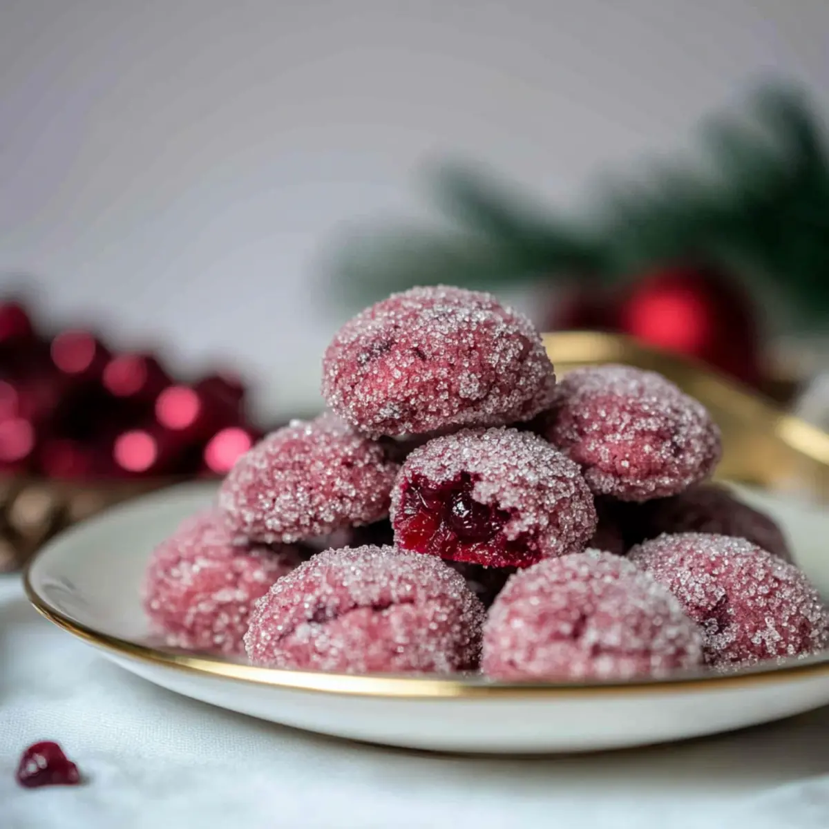 Jump to Recipe Print RecipeAs I watched the last leaves of autumn swirl down from the trees, I felt that unmistakable nudge to bake something cozy and festive. Enter the Sparkling Sugarplum Cranberry Cookies! These delightful holiday cookies not only bring a charming pop of plum color to your dessert table but also offer a chewy, sweet burst of cranberry-orange flavor with every bite. What I love most about this eggless recipe is how it invites creativity—you can enhance your cookies with rich white chocolate or crunchy nuts to make them uniquely yours. Perfect for holiday gatherings, these cookies are not just a treat; they’re a celebration of seasonal flavors and fond memories. So, what variations will you try to make them your own? Why Are Sparkling Sugarplum Cookies Irresistible? Chewy Delight: Imagine taking a bite and experiencing a soft, chewy texture that’s simply addictive. Vibrant Flavor: The bright notes of cranberry and orange come together, creating a festive explosion of taste. Customizable: From adding decadent white chocolate to experimenting with nuts, your options are limitless! Visual Appeal: These cookies are not just delicious; their stunning plum hue and sugary sparkle make any dessert table pop! Time-Saving: With a quick prep and baking time, you’ll be enjoying your festive treats in no time. Pair these with a warm cup of coffee or Enchanted Unicorn Lemonade for a magical holiday experience! Sparkling Sugarplum Cranberry Cookies Ingredients For the Cookies • Frozen Cranberries – The star of the show, packed with tartness; fresh cranberries can be used if softened first. • Orange Zest – Adds delightful citrusy brightness that enhances the cookie’s flavor profile. • Orange Juice – Provides moisture and balances the tartness of the cranberries; essential for the perfect dough consistency. • Unsalted Butter – Riches up the cookies, creating a soft, chewy texture everyone loves. • Granulated Sugar – Sweetens the mix; you can reduce the amount if using homemade cranberry sauce for a lighter treat. • All-Purpose Flour – This is the backbone for building structure and texture in your cookies. • Baking Powder (Aluminum-Free) – Ensures the cookies rise beautifully, resulting in a fluffy finish. • Salt – Balances sweetness and elevates the overall flavor of the cookies. • Craisins (Dried Cranberries) – A chewy sweetness boost; swap with your favorite dried fruits or nuts for a twist. Optional Additions • White Chocolate Chips – Add a creamy, decadent contrast to the chewy texture. • Chopped Almonds – Bring a nutty crunch for those who love a bit of bite in their cookies. • Sparkling Sugar – Roll the dough in this for an extra magical touch that truly shines during festive events. Step‑by‑Step Instructions for Sparkling Sugarplum Cranberry Cookies Step 1: Thaw and Blend Cranberries Begin by defrosting your frozen cranberries until they’re soft and juicy, which should take about 15 minutes at room temperature. Once thawed, blend the cranberries with orange juice and zest in a food processor until smooth, creating a vibrant, flavorful mixture that will infuse your Sparkling Sugarplum Cranberry Cookies with tartness and brightness. Step 2: Cream Butter and Sugar In a stand mixer, combine room-temperature unsalted butter with granulated sugar. Beat on medium speed for about 3-5 minutes, or until the mixture turns light and fluffy. This step is crucial for achieving the chewy texture that defines your cookies. Be sure to scrape down the sides of the bowl to ensure an even blend. Step 3: Combine Wet Ingredients Add the blended cranberry mixture to the fluffy butter and sugar mixture. Beat on low speed until fully incorporated, which should take about 1-2 minutes. The dough will take on a lovely plum hue and a sweet aroma, setting the foundation for your Sparkling Sugarplum Cranberry Cookies to shine both in taste and appearance. Step 4: Mix Dry Ingredients In a separate bowl, whisk together all-purpose flour, baking powder, and salt. Gradually add this dry mixture to the wet ingredients in your mixer, mixing on low speed until just combined—aim for about 30 seconds. Over-mixing can make your cookies tough, so stop as soon as no flour streaks remain visible, ensuring a delicate texture. Step 5: Fold in Craisins Gently fold in the Craisins using a spatula, ensuring they are evenly distributed throughout the dough. This will add a delightful chewiness to your Sparkling Sugarplum Cranberry Cookies! Make sure not to overwork the dough; a few gentle folds should do the trick to maintain the soft texture. Step 6: Chill the Dough Cover the cookie dough with plastic wrap and refrigerate for at least 30 minutes. Chilling the dough is essential as it helps to solidify the fat, resulting in thicker cookies that hold their shape while baking. During this time, preheat your oven to 400°F (200°C) so it’s hot and ready for baking. Step 7: Prepare Baking Sheets While the dough chills, prepare your baking sheets by lining them with parchment paper or silicone mats. This not only prevents sticking but also promotes even baking for your Sparkling Sugarplum Cranberry Cookies. Make sure to have your cookie scoop ready to portion out the dough easily once chilled. Step 8: Shape and Roll Cookies Once the dough is chilled, use a cookie scoop to scoop out portions of dough. Roll each ball in granulated or sparkling sugar for an enchanting finish, then place them evenly spaced on the prepared baking sheets. Aim for about 2 inches apart to allow for spreading during baking. Step 9: Bake to Perfection Slide the baking sheets into your preheated oven and bake for 8-10 minutes, until the edges of the Sparkling Sugarplum Cranberry Cookies are lightly golden. Keep a close eye, as you want the centers to remain soft and chewy. Once done, remove them promptly from the oven and allow them to cool on the baking sheets for a few minutes. Step 10: Cool