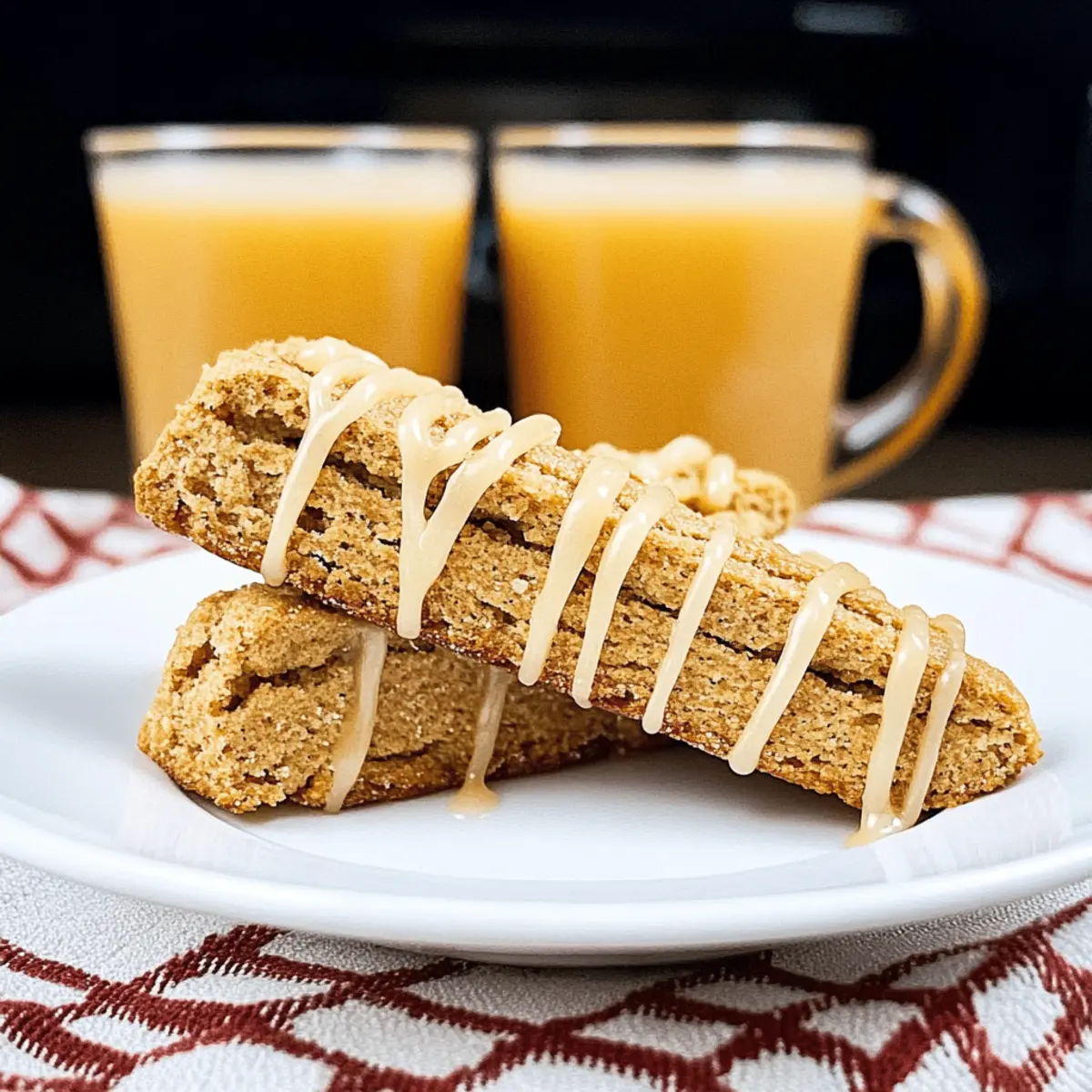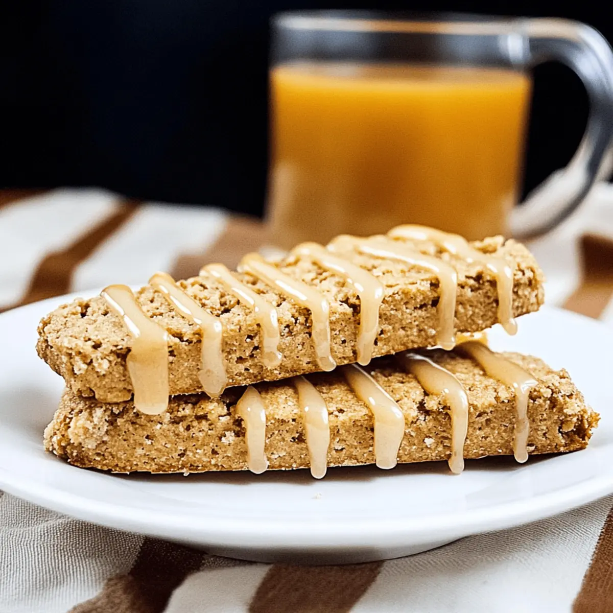 Jump to Recipe Print RecipeAs I stood in the kitchen, the crisp autumn air wafted through the window, igniting nostalgia with every whiff of simmering spices. Entering the baking realm is a delightful voyage where brushstrokes of flavor transform the humble into the extraordinary, and today’s star is the Spiced Apple Cider Biscotti! This recipe captures the very essence of the season, infusing each crunchy bite with rich apple cider and aromatic spices. What’s more, it’s incredibly easy to whip up, making it a perfect treat for gatherings or cozy evenings at home. Imagine pairing these golden-brown delights with a warm cup of coffee or spiced tea—you’ll be reminded of sunny days cruising through apple orchards. Ready to embark on this fall-inspired baking adventure? Let’s dive into creating your new favorite biscotti! Why are these biscotti irresistible? Unique flavor explosion: The combination of reduced apple cider and warm spices creates a delightful fall essence that you can savor in every bite. Easy to make: With just a few simple steps, you can bake these delicious treats, making them perfect for both novice and seasoned bakers. Perfect for pairing: Enjoy your Spiced Apple Cider Biscotti with hot coffee, tea, or even mulled cider, elevating any gathering into a cozy affair. Versatile variations: Experiment with different add-ins like nuts or dried fruits for a personalized twist, ensuring each batch feels special. For an extra treat, try pairing them with Fryer Caramelized Pineapple for a delicious dessert duo! Spiced Apple Cider Biscotti Ingredients For the Biscotti • Unsalted Butter – Provides richness and tenderness to the biscotti. Can substitute with coconut oil for a dairy-free option. • Granulated Sugar – Adds sweetness and aids in browning. Brown sugar can be used for a deeper flavor. • Eggs – Binds the ingredients and contributes to the biscotti’s structure. Use flax eggs for a vegan alternative. • Boiled Apple Cider – Infuses maximum apple flavor. Can substitute with regular apple cider, but results in a milder taste. • All-Purpose Flour – Gives structure and texture. Gluten-free flour blend can be used if needed. • Baking Powder – Leavening agent that helps the biscotti rise. No substitutes necessary. • Ground Cinnamon, Fresh Grated Nutmeg, Ground Allspice – Adds warmth and spice to enhance the fall flavor profile. Other spices like cloves can be added for extra depth. • Salt – Enhances all flavors. Essential for balance; do not omit. For the Glaze • Powdered Sugar – Used for glazing the biscotti to add sweetness and a decorative touch. Optional, can reduce the amount for less sweetness. • Boiled Apple Cider – Adds flavor and a beautiful sheen to the glaze. This extra layer makes the Spiced Apple Cider Biscotti truly shine. Step‑by‑Step Instructions for Spiced Apple Cider Biscotti Step 1: Boil the Cider Begin by pouring 2 cups of fresh apple cider into a medium saucepan. Bring the cider to a gentle boil over medium heat, then reduce to a simmer. Keep an eye on it and allow it to reduce for about 25 minutes, until it thickens down to about 1/2 cup. The aroma will fill your kitchen, setting the stage for your Spiced Apple Cider Biscotti. Step 2: Prepare Oven and Baking Sheet While the cider cools, preheat your oven to 350°F (175°C). Line a baking sheet with parchment paper, creating a non-stick surface that will help your biscotti bake evenly. This preparation ensures that once the dough is ready, you can transfer it straight to the oven for baking without delay. Step 3: Mix Dry Ingredients In a large mixing bowl, whisk together 2 cups of all-purpose flour, 1 tablespoon of baking powder, 1 teaspoon of ground cinnamon, 1/4 teaspoon of freshly grated nutmeg, 1/4 teaspoon of ground allspice, and 1/4 teaspoon of salt. This mixture of dry ingredients captures the essence of fall and will create a flavorful base for your Spiced Apple Cider Biscotti. Set aside for later use. Step 4: Cream Butter and Sugar In a separate bowl, beat 1/2 cup of softened unsalted butter and 3/4 cup of granulated sugar together until the mixture is light and fluffy, which should take about 3-4 minutes. Then, add in 2 large eggs one at a time, mixing thoroughly after each addition. This step helps create a rich, airy texture for the biscotti, essential for the perfect crunch. Step 5: Combine Gradually stir in the boiled apple cider, blending until just combined. Slowly add the dry ingredient mixture to the wet ingredients, mixing until fully incorporated. At this point, your dough should be cohesive and slightly sticky, capturing the delightful essence of your Spiced Apple Cider Biscotti. Step 6: Shape Logs Divide the dough into two equal pieces and transfer each onto the prepared baking sheet. Shape each portion into logs about 10-12 inches long and 4 inches wide, ensuring they are evenly formed. The shape will allow for easy slicing after the first bake, providing that delightful crunch you expect from biscotti. Step 7: First Bake Place the baking sheet in the preheated oven and bake for approximately 25 minutes, or until the logs turn a beautiful golden brown. At this point, they should be firm to the touch and slightly puffed up, creating an inviting base for your biscotti. Step 8: Slice and Second Bake Once baked, remove the logs from the oven and let them cool for about 10 minutes before slicing. Using a serrated knife, cut the logs into 1-inch slices, then lay them cut-side down on the baking sheet. Return them to the oven and bake for an additional 10-15 minutes, flipping halfway through to ensure an even, crisp texture. Step 9: Cool Completely After the second bake, transfer the biscotti slices to a wire rack, allowing them to cool completely. This cooling process helps them firm up and enhances the crunchiness that makes your Spiced Apple Cider Biscotti so irresistible. Be patient; the aroma wafting from the cooling biscotti will only