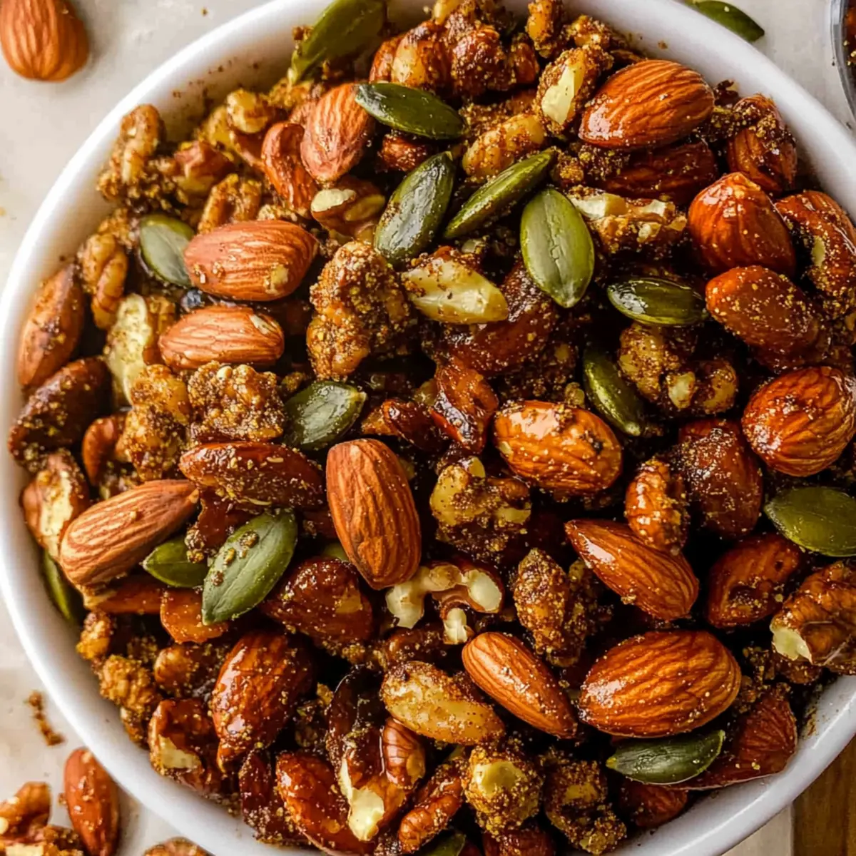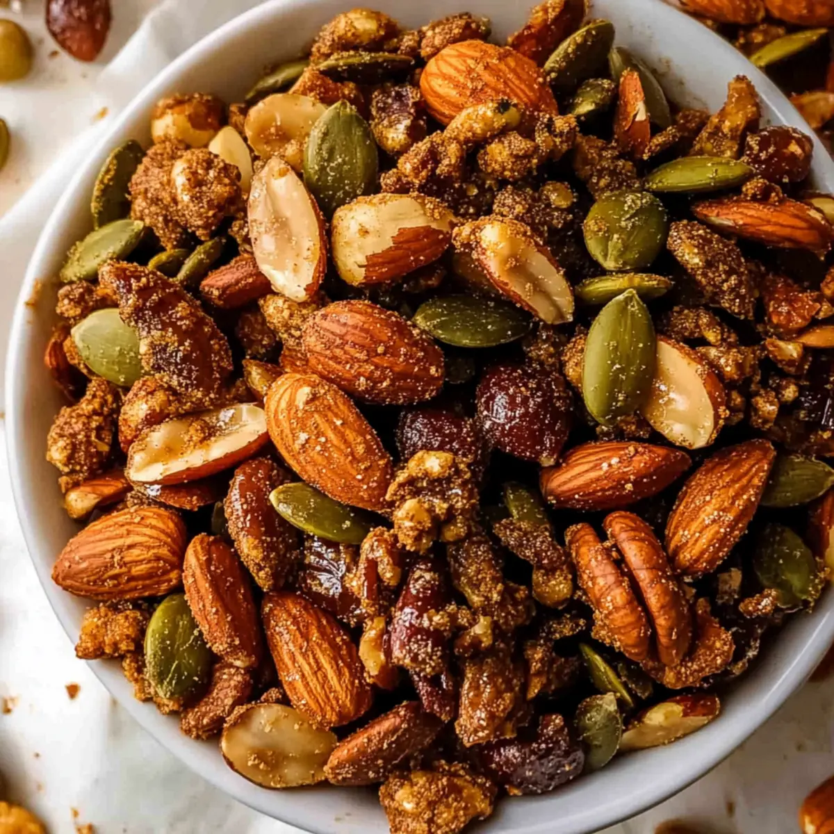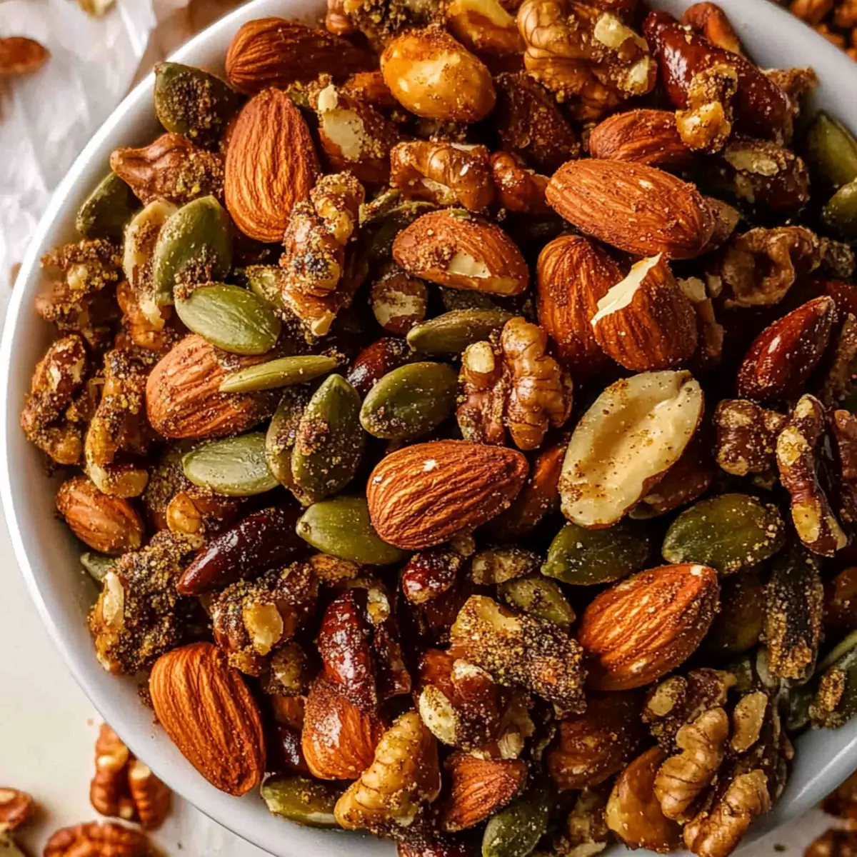 Absolutely! For the best flavor and texture, use a mix of almonds, pecans, cashews, pistachios, and pumpkin seeds. These varieties not only complement each other well but also create an exciting crunchy medley. If you have allergies or specific preferences, feel free to substitute with your favorites, like walnuts or sunflower seeds, but try to keep the combinations diverse for a balanced taste.