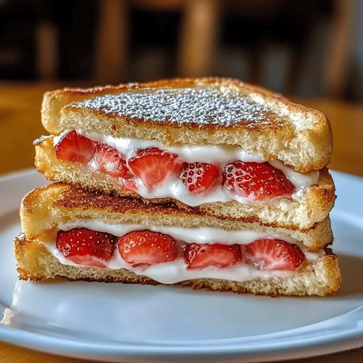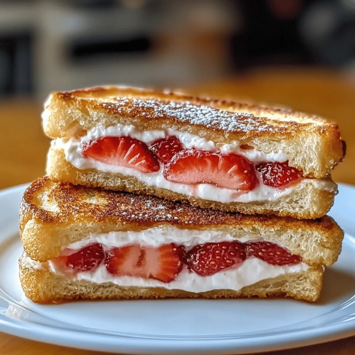 Indulge in crispy strawberry cheesecake sandwiches, bursting with creamy filling and fresh strawberries, perfect for breakfast or dessert.