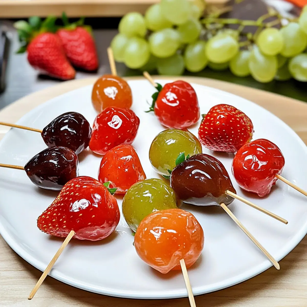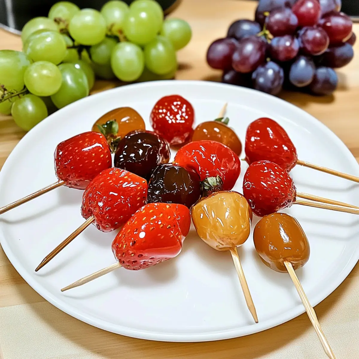 Jump to Recipe Print RecipeHave you ever taken a bite of something that instantly transported you to the lively streets of Asia? That’s the magic of tanghulu! This delightful treat features fresh fruit, skewered and encased in a glossy, sweet candy shell. Making your own homemade tanghulu is not only simple and quick, but it also transforms everyday fruit into a fun dessert or snack that’s perfect for sharing at gatherings or enjoying with your family. Whether you’re dipping strawberries, juicy grapes, or exotic kiwi, you’re guaranteed to impress your friends and family with this easy recipe. With each crunch, you’ll savor the harmonious balance of textured candy and luscious fruit that promises to be a showstopper. Ready to dive into this delicious adventure? Let’s create some magic together! Why is Tanghulu a Must-Try? Sweet simplicity: This homemade tanghulu recipe is refreshingly easy, allowing anyone to create a stunning dessert in no time. Versatile fun: Choose from a variety of fruits like strawberries, grapes, or kiwi to match your taste or the occasion. Crowd-pleaser: Whether at kids’ parties or family gatherings, tanghulu is sure to capture attention and delight taste buds. Glamorous presentation: The glossy candy shell adds a touch of elegance to any table, making it an ideal treat for entertaining guests. Perfect texture: Experience the satisfying crunch paired with juicy, fresh fruit—it’s a delightful contrast you’ll love! Don’t forget to check out our expert tips for best results, ensuring your tanghulu turns out perfectly every time. Tanghulu Ingredients • Get ready to create this delightful snack! For the Fruit Strawberries – Fresh and juicy, they add a burst of natural sweetness. Grapes – Choose firm, seedless grapes to enjoy a snack that’s easy to pop in your mouth. Kiwi – Tangy and vibrant, kiwi provides a unique twist to your tanghulu. Other Fruits – Feel free to experiment with blueberries, kumquats, or apple slices for a fun mix! For the Candy Coating White Sugar – The crucial ingredient for creating the glossy, crispy candy shell. Water – Needed to dissolve the sugar, giving you the perfect syrup for coating your fruit. With these ingredients in hand, you’re all set to impress with your homemade tanghulu! Step‑by‑Step Instructions for Tanghulu Step 1: Prepare the Fruit Start by thoroughly washing your chosen fruit, such as strawberries or grapes, and pat them dry with a clean towel. Make sure to remove any stems or leaves, and slice larger fruits like kiwi into bite-sized pieces. Ensuring the fruit is completely dry is essential for a proper candy coating that glistens beautifully. Step 2: Skewer the Fruit Next, take your clean wooden skewers and carefully thread 1-2 pieces of fruit onto each skewer, leaving some space at one end for easy handling. This will create bite-sized tanghulu pieces that are not only easy to eat but also visually appealing when lined up for serving. Step 3: Make an Ice Bath Prepare an ice bath by filling a large bowl with cold water and adding ice cubes. This setup will help in rapidly cooling the fruit once it’s coated in the hot sugar syrup, ensuring that the glossy candy shell sets perfectly and maintains that delightful crunch associated with tanghulu. Step 4: Cook the Sugar Syrup In a medium-sized saucepan, combine equal parts white sugar and water. Heat over medium heat, stirring occasionally, until the sugar completely dissolves. Once dissolved, stop stirring and let the mixture boil. Use a candy thermometer to monitor the temperature—aim for 300°F (hard crack stage) where the syrup becomes clear and thick. Step 5: Dip the Fruit Once the sugar syrup reaches the desired temperature, quickly dip each skewer of fruit into the syrup, making sure each piece is well-coated. Work swiftly to ensure that the syrup remains hot enough to create a crispy shell. After dipping, immediately transfer the skewers to the ice bath to set the candy coating. Step 6: Cool and Serve Place the coated fruit skewers on a tray lined with parchment paper to cool for a few minutes. Allow the tanghulu to rest until the candy shell hardens completely. These scrumptious, glossy treats are now ready to impress your friends and family with their vibrant appearance and satisfying crunch! Make Ahead Options Preparing tanghulu in advance is a game-changer for busy home cooks looking to save time without sacrificing flavor! You can wash, dry, and skewer your fruits up to 24 hours before you plan to serve. Simply store the skewers in an airtight container at room temperature to keep them fresh. For the candy coating, make your sugar syrup ahead of time and keep it in a covered saucepan off the heat for up to 2 hours. When you’re ready to finish, just reheat the syrup gently, dip the fruit skewers quickly, and set them in an ice bath to achieve that beautiful glossy finish. This way, you ensure your tanghulu is just as delightful as when freshly made, making it the perfect treat for spontaneous gatherings! What to Serve with Homemade Tanghulu? Indulging in the crunchy, sweet delight of tanghulu is just the beginning; pair it with these complementary treats for a memorable experience! Coconut Rice Pudding: This creamy, comforting dessert offers a subtle sweetness that matches the fruitiness of tanghulu. The smooth texture contrasts beautifully with the crunchy candy shell. Matcha Green Tea: Refreshing and slightly bitter, this fragrant drink balances the sweetness of tanghulu while providing a traditional Asian vibe for your meal. Spring Rolls: Crisp veggies wrapped in delicate rice paper enhance the freshness of fruit-based tanghulu. Dip them in a tangy sauce for an extra layer of flavor! Sliced Watermelon: Juicy and hydrating, fresh watermelon cleanses the palate, making each crunchy bite of tanghulu feel even more delightful. It’s a match made in summer heaven! Chilled Jasmine Tea: The floral notes of jasmine tea are 