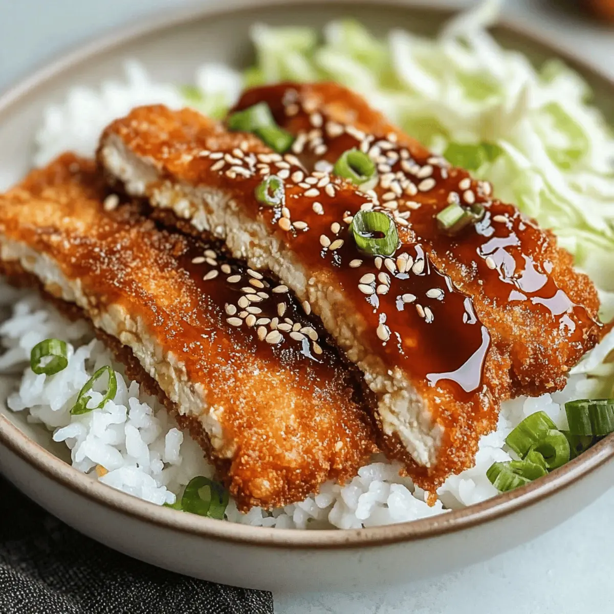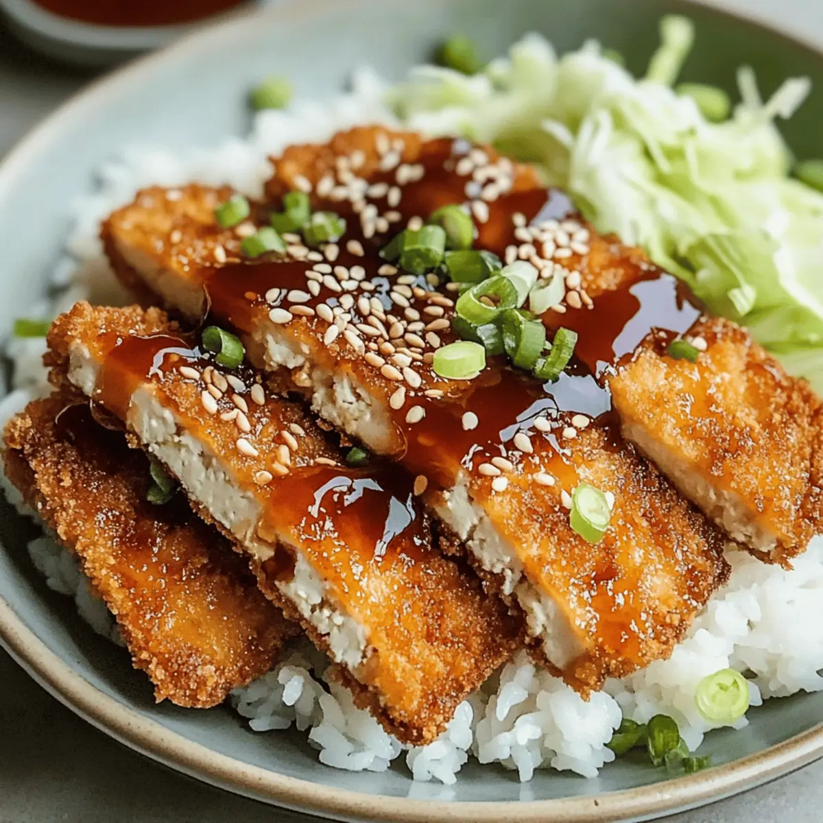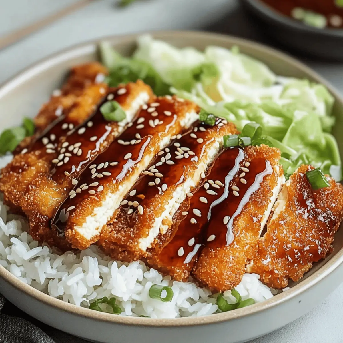 Jump to Recipe Print RecipeAs I savored the last bite of my latest creation, the memory of a bustling Japanese izakaya flooded my mind—smoky grills, laughter, and the tantalizing aroma of fried delights. Enter Teriyaki Tofu Katsu, a scrumptious twist on the classic dish that pairs tender, golden-fried tofu with a sweet-savory teriyaki glaze. This vibrant vegan masterpiece transforms humble ingredients into a meal that’s both satisfying and guilt-free, perfect for a quick weeknight dinner or meal prep. The best part? It’s incredibly easy to make and not only a high-protein option but also low in saturated fat. Are you ready to indulge in a dish that’s both heartwarming and delightfully crunchy? Let’s dive into this flavorful journey together! Why is Teriyaki Tofu Katsu a Must-Try? Irresistible Crunch: Each bite of this crispy tofu delivers a satisfying crunch that makes it hard to believe it’s plant-based. Sweet-Savory Harmony: You’ll love the perfect balance of flavors in the teriyaki glaze that elevates simple ingredients into a gourmet dish. Quick and Easy: This recipe is designed for busy weeknights, allowing you to whip up a delicious meal in under 30 minutes. Heart-Healthy Choice: With its high protein and low saturated fat content, indulging feels guilt-free, making it suitable for various dietary needs. Versatile Serving Options: Pair it with rice, veggies, or even toss it in a katsu sandwich for a delightful twist, just like my Ground Turkey Teriyaki recipe! Crowd-Pleaser: Whether serving family or hosting a casual dinner, this Teriyaki Tofu Katsu is sure to receive rave reviews from everyone at the table! Teriyaki Tofu Katsu Ingredients For the Tofu and Coating • Tofu – Use extra firm tofu for the best texture and to prevent sogginess. • All-Purpose Flour – Acts as the initial coating; swap with rice flour if you need a gluten-free option. • Plant-Based Milk – Any unsweetened variety will do; this helps panko adhere better. • Apple Cider Vinegar – Mix this with your plant-based milk to create a buttermilk-like consistency. • Panko Breadcrumbs – This specialty breadcrumb creates that irresistible crunch; gluten-free panko works too. • Salt – Enhances the overall flavor of the dish. • Black Pepper – Adds a hint of heat to the tofu. • Garlic Powder – Infuses the coating with flavor that pairs beautifully with teriyaki. For Frying • Oil for Frying – Essential for achieving that golden crispy texture; vegetable or peanut oil works best. For the Teriyaki Sauce • Soy Sauce or Tamari – The base that gives the sauce depth and umami flavor; tamari is a great gluten-free choice. • Mirin – Adds a touch of sweetness to balance the flavors. • Rice Vinegar – Provides acidity to brighten the sauce’s flavor profile. • Brown Sugar – Sweetens the teriyaki sauce perfectly. • Grated Ginger – Offers a fresh bite and warmth to the sauce. • Minced Garlic – For that extra garlicky goodness in the teriyaki. • Cornstarch + Water (Slurry) – Thickens the sauce for that glossy finish, making it stick beautifully to the crispy tofu. Now that you have all the essentials, you’re ready to make your own delightful Teriyaki Tofu Katsu! Enjoy this savory dish that’s sure to impress and comfort at the same time! Step‑by‑Step Instructions for Teriyaki Tofu Katsu Step 1: Prepare the Tofu Start by pressing the extra firm tofu to remove excess moisture for about 15 minutes. Slice the pressed tofu into four equal cutlets, each a half-inch thick. Pat them dry with a paper towel to ensure a crispy texture later. Place the cutlet on a plate and set it aside while you prepare the breading station. Step 2: Set Up the Breading Station Arrange three separate bowls: one for all-purpose flour, one for a mixture of plant-based milk and apple cider vinegar, and one for panko breadcrumbs seasoned with salt, black pepper, and garlic powder. This structure will help you easily coat each piece of tofu, ensuring every cutlet is thoroughly covered, promoting both flavor and texture in the Teriyaki Tofu Katsu. Step 3: Bread the Tofu Cutlets Dunk each tofu cutlet in the flour, coating it evenly, then dip it into the milk-vinegar mixture, allowing any excess to drip off. Finally, roll the cutlet in the seasoned panko, pressing down gently to ensure the breadcrumbs adhere well. Repeat this process for all the tofu pieces, making sure they’re nicely coated for that crunchy exterior. Step 4: Fry the Tofu Cutlets Heat about half an inch of oil in a large non-stick skillet over medium heat until shimmering, around 350°F. Carefully add the breaded tofu cutlets in batches, ensuring there’s enough space between them. Fry each side for about 3-4 minutes or until they are golden-brown and crispy. Then, transfer the cooked cutlets to a plate lined with paper towels to drain excess oil. Step 5: Make the Teriyaki Sauce In a saucepan, combine soy sauce (or tamari), mirin, rice vinegar, brown sugar, grated ginger, and minced garlic. Place the saucepan over medium heat and bring the mixture to a gentle simmer, allowing the flavors to meld together for about 3-5 minutes. Keep an eye on it to ensure it doesn’t boil over. Step 6: Thicken the Sauce Once the teriyaki mixture is simmering, mix cornstarch with a small amount of water to create a slurry. Slowly add this slurry to the saucepan while stirring continuously. Cook for an additional 1-2 minutes until the sauce thickens to a glossy consistency, perfect for drizzling over the crispy tofu katsu. Step 7: Serve Your Teriyaki Tofu Katsu To serve, place the crispy tofu cutlets on a plate and generously drizzle the warm teriyaki sauce over them. Pair with steamed rice, fresh cabbage, or a sprinkle of sesame seeds and green onions to create a visually appealing and delicious meal that embodies the flavors of Teriyaki Tofu Katsu. Expert Tips for Teriyaki Tofu Katsu Press Tofu Well: Ensure tofu is adequately pressed to r