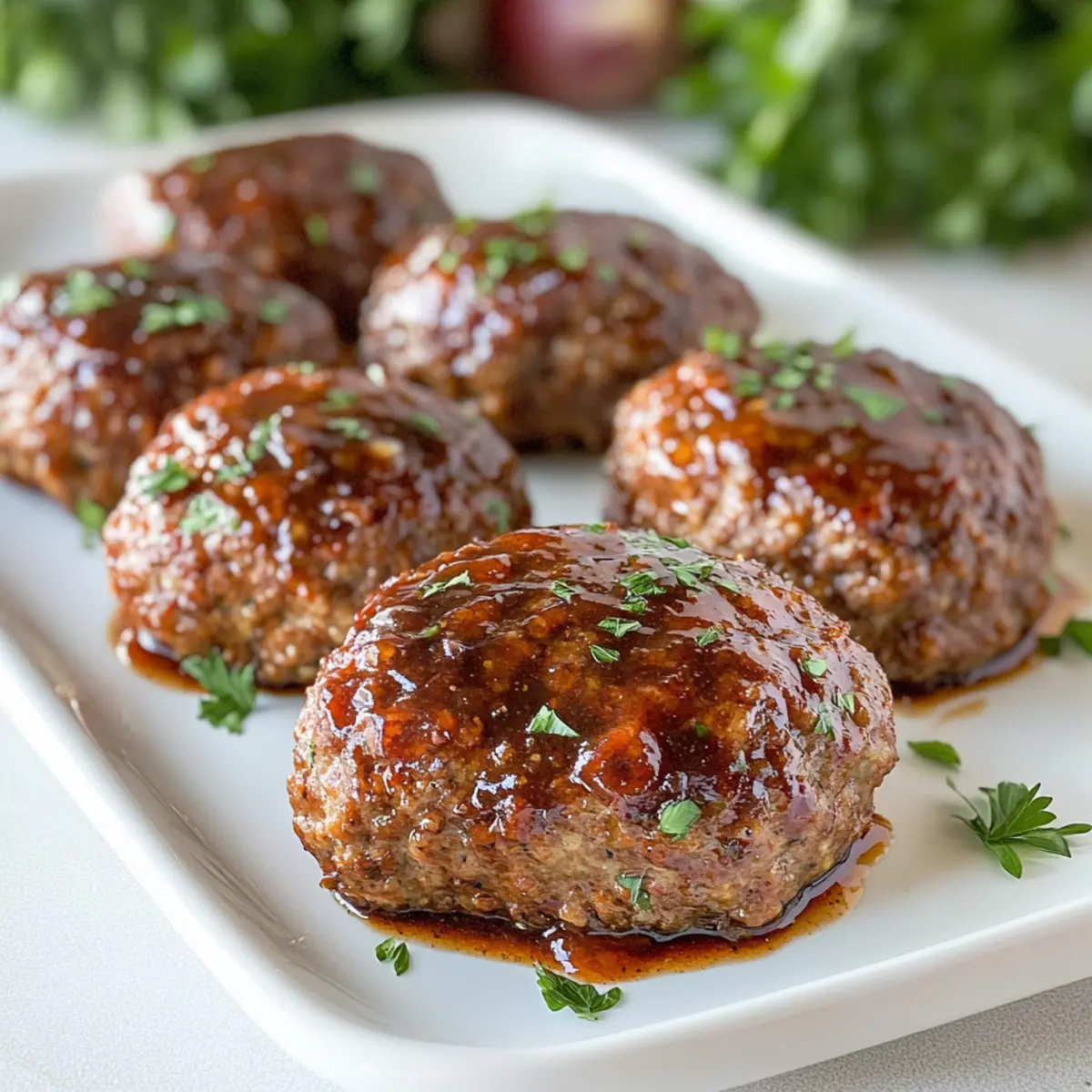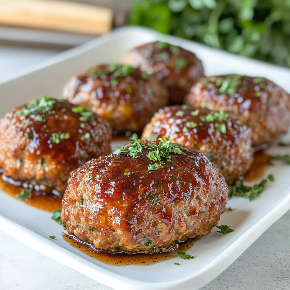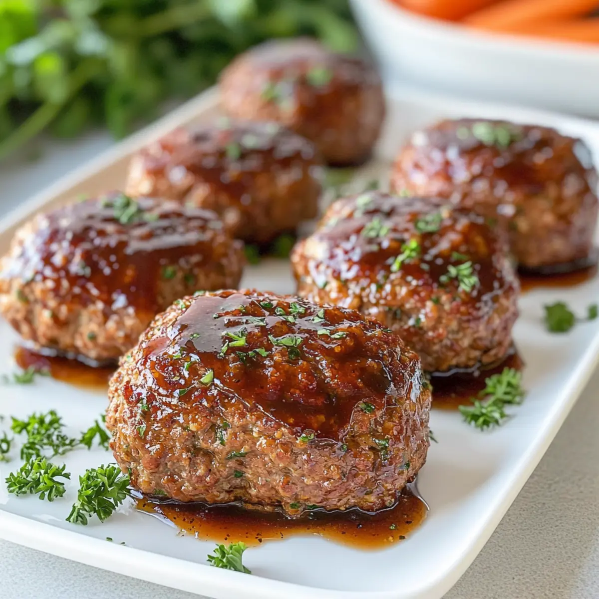 Jump to Recipe Print RecipeOn a busy weeknight, the last thing I want is to juggle pots and pans while trying to whip up something everyone will love. That’s where my Mini Turkey Meatloaf with Balsamic Brown Sugar Glaze steps in like a dinner superhero! These delightful little loaves cook in less than 25 minutes and are the perfect way to serve up hearty flavor without all the fuss. What’s even better is they’re not just indulging; they fit seamlessly into your Whole30 or Paleo lifestyle, making healthy eating a snap. Plus, the sweet glaze beautifully complements the savory turkey, creating a flavor experience that leaves everyone wanting more. Intrigued about how to make this favorite in your own kitchen? Let’s dive into the deliciousness! Why is Turkey Meatloaf So Special? Simplicity: This recipe is incredibly easy to follow, making it perfect for home cooks of all skill levels. Flavor Explosion: The sweet balsamic glaze complements the savory turkey beautifully, ensuring each bite is packed with deliciousness. Healthy Options: Enjoy guilt-free eating with Whole30 and Paleo adaptations, plus gluten-free substitutions available for dietary needs. Time-Saving: Ready in under 25 minutes, this meal fits perfectly into your busy weeknight routine. Crowd-Pleaser: Mini loaves are not just charming; they are portioned to please everyone, making them ideal for family dinners or meal prep. Whether you’re serving them alongside skinny garlic parmesan mashed red potatoes or a colorful vegetable medley, this turkey meatloaf is sure to become a family favorite! Turkey Meatloaf Ingredients Transform your weeknight dinners with this Turkey Meatloaf recipe that’s both easy and delicious! For the Meatloaf Butter – Adds richness and moisture; ghee or olive oil can be used for a Whole30 option. Yellow Onion – Provides sweetness and depth; finely diced for even cooking. Garlic – Adds pungent flavor; use fresh for the best aroma. Fresh Thyme – Offers herbal notes; substitute with dried thyme (less needed). Ground Turkey (93/7) – The main protein source, keeping the meatloaf lean; ground chicken or beef are worthy alternatives. Eggs – Help bind the mixture; substitute with flaxseed meal mixed with water for a vegan option. Seasoned Breadcrumbs – Add texture; swap with almond flour for gluten-free or Whole30 versions. Fresh Parsley – Contributes freshness and color; feel free to use other herbs like basil. Kosher Salt and Fresh Ground Pepper – Essential for seasoning; adjust according to personal preference. Worcestershire Sauce – Enhances umami flavor; use coconut aminos for Whole30 compliance. For the Glaze Ketchup – Forms the base of the glaze; select a no-added-sugar option for Whole30. Balsamic Vinegar – Provides tang; can substitute with apple cider vinegar if needed. Brown Sugar – Adds sweetness to the glaze; maple syrup can be a delightful substitute for a different flavor. This turkey meatloaf is not only easy to prepare but also brings satisfying flavors to your dinner table! Step‑by‑Step Instructions for Mini Turkey Meatloaf with Balsamic Brown Sugar Glaze Step 1: Preheat the Oven Begin by preheating your oven to 375°F (190°C). While the oven warms up, line a baking sheet with parchment paper to prevent sticking and facilitate easy cleanup later. This setting ensures your Mini Turkey Meatloaf will bake evenly, resulting in a beautifully cooked dish that everyone will love. Step 2: Sauté Onions In a skillet over medium heat, melt a tablespoon of butter. Once it’s bubbling, add the finely diced yellow onion. Sauté the onions for about 5 minutes, or until they become tender and translucent. The goal is to make them aromatic by adding fresh thyme and minced garlic just before removing from heat, allowing the flavors to meld beautifully. Step 3: Combine Ingredients In a large mixing bowl, add the ground turkey, breadcrumbs, eggs, parsley, kosher salt, fresh ground pepper, Worcestershire sauce, and the cooled onion mixture. Use your hands or a spatula to mix until all ingredients are thoroughly combined. You’ll want a homogenous mixture, but don’t overmix; this will keep your Mini Turkey Meatloaf tender and juicy. Step 4: Shape Meatloaves Divide the meat mixture into eight equal portions, about 5-6 ounces each. With clean hands, shape each portion into a small loaf, about 2 inches in height. Place each meatloaf on the prepared baking sheet, ensuring they are well spaced apart for even baking. This step is crucial to achieving that perfectly satisfying texture in your Mini Turkey Meatloaf. Step 5: Prepare Glaze In a medium bowl, mix together the ketchup, balsamic vinegar, and brown sugar until well combined. This glaze will give your Mini Turkey Meatloaf a delightful sweet and tangy finish. Take a brush and generously coat the tops of the shaped loaves with half of the glaze, ensuring even coverage for that tasty, caramelized top. Step 6: Bake Place the baking sheet in the preheated oven and bake for 15 minutes. After 15 minutes, remove the meatloaves and brush them with the remaining glaze. Return them to the oven and continue baking for an additional 5-10 minutes. The meatloaf is done when the internal temperature reaches 150°F (65°C), creating a tender inside with a slightly crisp exterior. Step 7: Rest and Serve Once baked, remove the Mini Turkey Meatloaf from the oven and let them rest on the baking sheet for 5-10 minutes. This resting period helps the juices redistribute, making them even more flavorful when served. Slice and enjoy your savory mini loaves, perhaps alongside some mashed potatoes or a vibrant vegetable medley! How to Store and Freeze Turkey Meatloaf Fridge: Store leftover Turkey Meatloaf in an airtight container for up to 5 days. To reheat, simply warm in the microwave or oven until heated through. Freezer: Wrap individual meatloaves in plastic wrap and place them in a freezer-safe container for up to 3 months. Thaw overnight in th