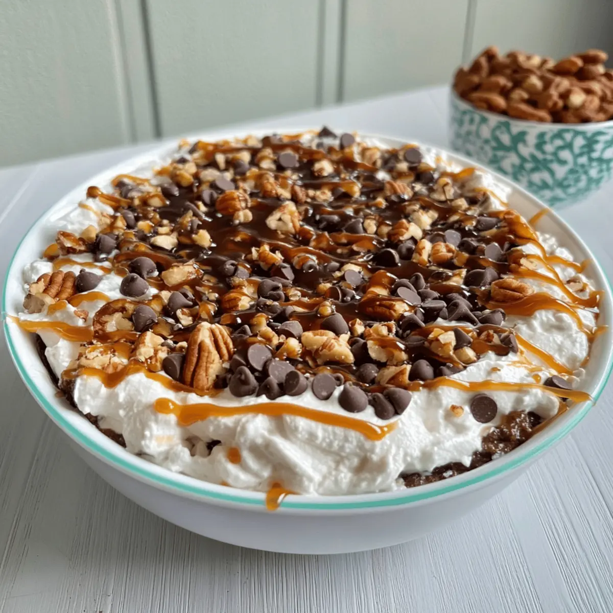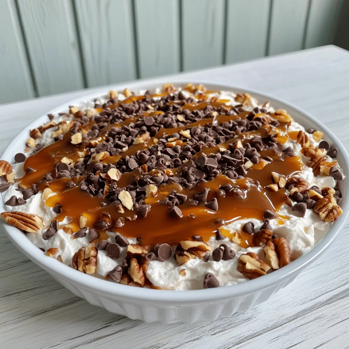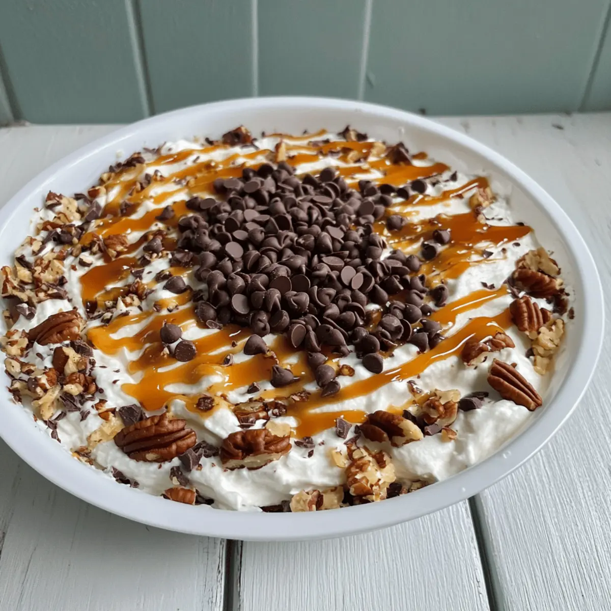 Jump to Recipe Print RecipeAs I rummaged through my pantry one lazy afternoon, I stumbled upon a few ingredients that promised to transform my snack game. The result? A delightfully creamy Turtle Cheesecake Dip that combines the irresistible flavors of caramel, chocolate, and pecans in one simple bite. This no-bake dessert is not just quick and easy to prepare—taking a mere 10 minutes—but it’s also a guaranteed crowd-pleaser that will have everyone asking for the recipe. Whether you’re hosting a party, gathering with family, or just indulging during a cozy night in, this dip will satisfy your sweet tooth and reignite memories of those beloved turtle candies. So, are you ready to dive into this creamy goodness? Why Is This Turtle Cheesecake Dip a Must-Try? Irresistible flavors come together in this dip, making it a favorite among all age groups. No-Bake Convenience means you can whip it up in just 10 minutes, ideal for busy days or unexpected guests. Endless Versatility allows you to customize it with different chocolate or nut combinations, ensuring that no two dips are ever the same! Crowd-Pleasing Appeal makes it perfect for parties or family gatherings, as everyone loves a sweet treat that’s both creamy and crunchy. For more delightful variations, check out our delicious Oreo Cheesecake Decadent and Strawberry Crunch Cheesecake. Your friends and family will thank you for introducing them to this ultimate dessert dip! Turtle Cheesecake Dip Ingredients For the Dip Cream Cheese – Provides creaminess and structure; use full-fat for a richer taste. Powdered Sugar – Sweetens the dip; can substitute with a sugar alternative if preferred. Frozen Whipped Topping – Adds fluffiness and lightness; thaw before use or substitute with fresh whipped cream. Chopped Pecans (divided) – Enhances the turtle flavor profile, adding crunch; walnuts or almonds can be used as alternatives. Semi-Sweet Chocolate Chips (divided) – Infuses the dip with chocolate flavor; swap with dark chocolate for a richer experience. Caramel Dip – Introduces gooey sweetness; can be replaced with homemade caramel sauce for a fresh touch. Chocolate Syrup – For drizzling and added sweetness; optional darker chocolate syrup can enhance the flavor. Step‑by‑Step Instructions for Turtle Cheesecake Dip Step 1: Mix Creamy Base In a medium mixing bowl, beat 8 ounces of softened cream cheese along with 1 cup of powdered sugar using an electric mixer on medium speed until smooth and creamy. This should take about 2-3 minutes; the mixture should be free of lumps and have a light texture. Use a rubber spatula to scrape down the sides of the bowl to ensure even mixing. Step 2: Fold in Whipped Topping Gently fold in 8 ounces of thawed frozen whipped topping into the cream cheese mixture using a spatula or a large spoon. Be careful not to deflate the whipped topping as you combine them; the goal is a light and airy mix. Continue folding until the mixture is uniform and fluffy, with no streaks of cream cheese remaining. Step 3: Add Nuts and Chocolate Stir in ¾ cup of chopped pecans and ¾ cup of semi-sweet chocolate chips into the dip mixture. Use a wooden spoon or spatula for this step, ensuring the nuts and chocolate are evenly distributed throughout. The creamy Turtle Cheesecake Dip should be rich and textured, with the nuts providing a satisfying crunch. Step 4: Transfer and Smooth Carefully transfer the dip mixture into a 9-inch pie plate or your preferred serving dish. Spread it evenly with the back of a spatula, smoothing the top to create a flat, even surface. Make sure it’s evenly distributed to help it maintain its shape when serving, making it visually appealing for your guests. Step 5: Drizzle Caramel and Chocolate Slightly heat ½ cup of caramel dip in the microwave for 15-20 seconds, just until it’s pourable. Drizzle the warmed caramel over the top of the Turtle Cheesecake Dip, followed by a drizzle of chocolate syrup for an added sweet touch. This will create a beautiful marbled effect that’s as tempting as it is delicious. Step 6: Garnish and Serve Finish by sprinkling the remaining ¼ cup of chopped pecans and ¼ cup of chocolate chips as a garnish over the dip. This won’t just add visual appeal; it’ll also enhance the texture with delightful bites of crunch. Serve immediately with dippers like fresh fruit or graham crackers, or refrigerate until you’re ready to share this delicious Turtle Cheesecake Dip with everyone. What to Serve with Quick No-Bake Turtle Cheesecake Dip Elevate your dessert experience with delightful pairings that accentuate the creamy goodness of this indulgent dip. Graham Crackers: Their crunchy texture and mild flavor make them perfect vehicles for scooping up the creamy dip, enhancing each bite. Fresh Strawberries: Juicy and sweet, strawberries provide a refreshing contrast to the rich flavors of the Turtle Cheesecake Dip, creating a delightful balance. Apple Slices: The crispness and tartness of apple slices offer a refreshing contrast to the sweet dip, adding a nutritious twist to your dessert table. Pretzel Sticks: With their salty crunch, pretzel sticks amplify the rich flavors while adding a fun and playful texture to your dessert experience. Mini Chocolate Cookies: These sweet treats complement the chocolate element of the dip, making each bite a double chocolate delight that chocolate lovers will adore. Caramel Drizzle: Enhance the experience by serving extra warm caramel sauce on the side; it turns each scoop into a gooey masterpiece. Almonds or Pecans: Offering an added crunch and nutty flavor, these nuts elevate the texture and bring out the pecan notes in the dip. Coffee or Milk: For a warm beverage pairing, coffee’s bold flavors can offset the sweetness, while cold milk complements the creamy richness of the dip beautifully. Whipped Cream: A dollop of fresh whipped cream on top can add airiness, making the dip even more luscious and enjoyable. Make thi