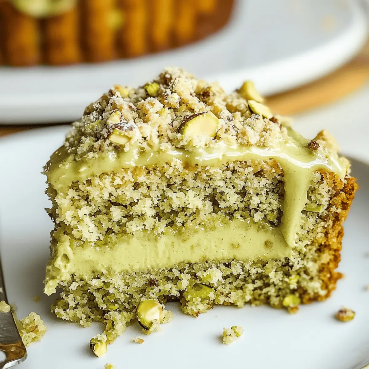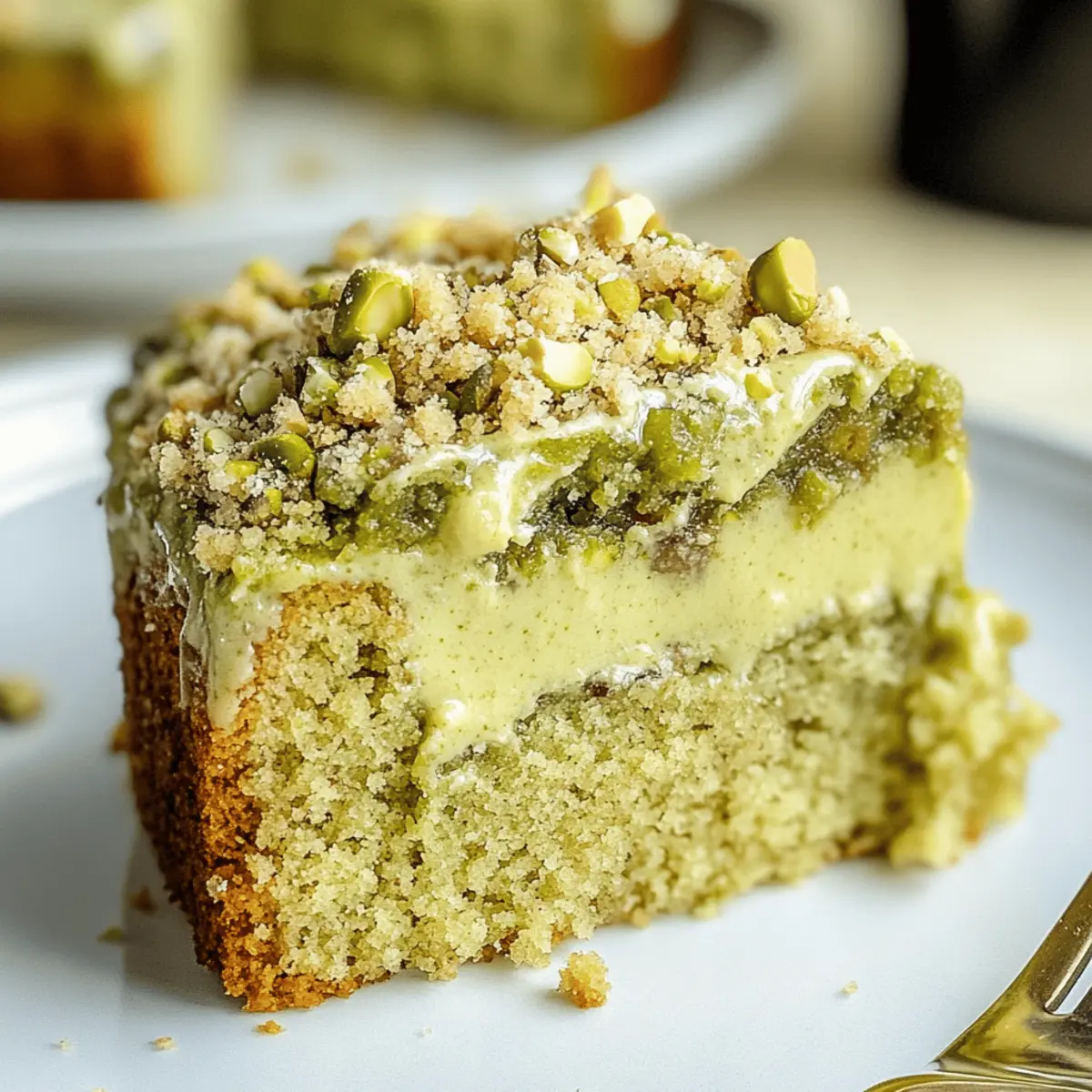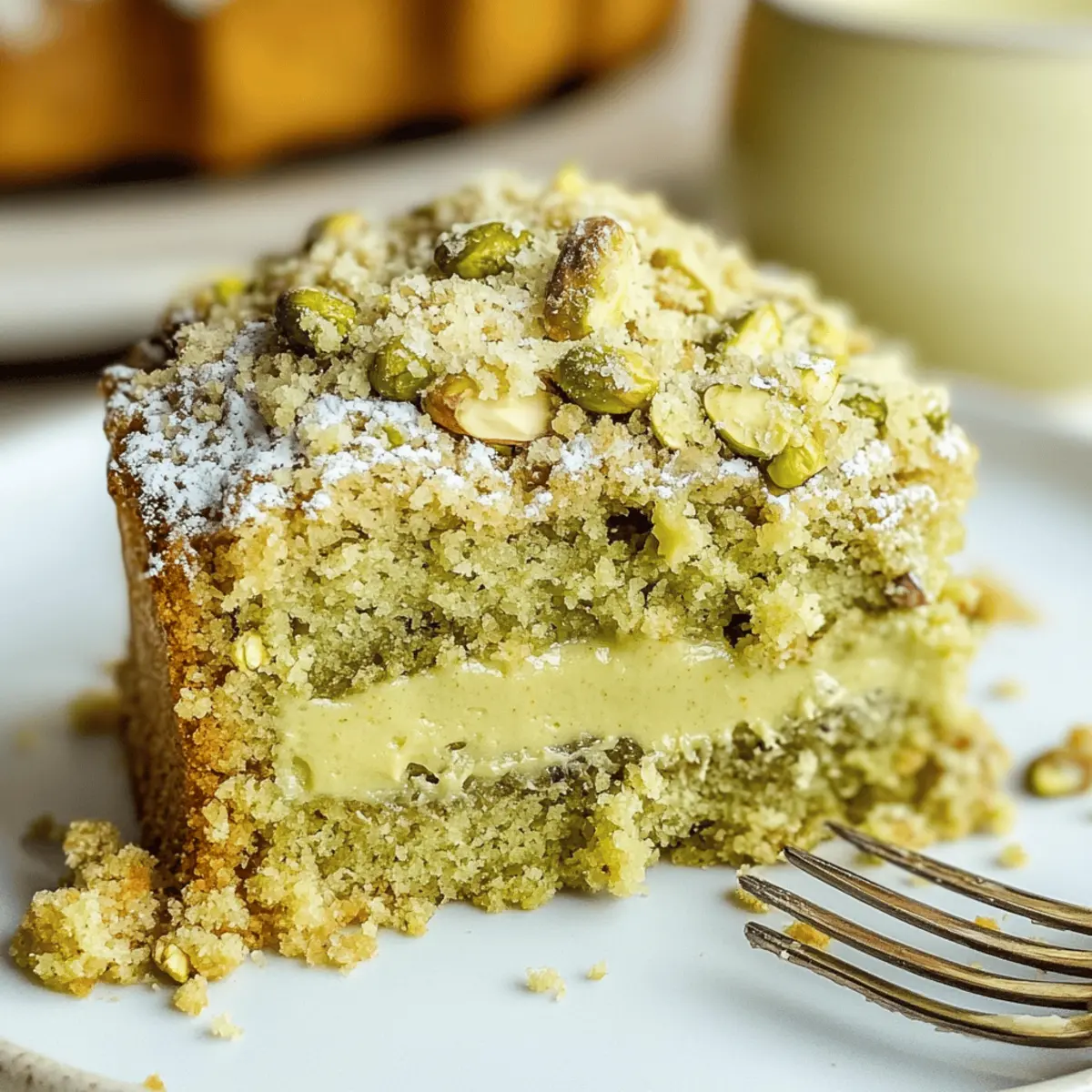 Jump to Recipe Print RecipeAs I pulled my cake from the oven, the kitchen filled with the intoxicating aroma of toasted pistachios mingling with sweet vanilla—a scent that wraps around you like a warm hug. Today, I’m thrilled to share my favorite recipe for a Vegan Pistachio Coffee Cake, a delightful eggless treat that’s both moist and airy. Topped with a crunchy pistachio crumble and filled with a luxurious dairy-free cream, this cake is a celebration of flavor and texture. Not only is it easy to whip up, making it perfect for both novice and seasoned bakers, but it also stands as a scrumptious treat for your morning coffee chats or afternoon tea breaks. Curious to see how this green gem comes together? Let’s dive into the baking magic! Why is this cake a must-try? Unforgettable Flavor: The pistachio essence shines through, creating a taste experience that delightfully balances nuttiness and sweetness. Effortless Baking: With straightforward steps, even novice bakers can achieve cake perfection sans eggs! Dairy-Free Delight: Using a dairy-free cream, this cake is perfect for those with dietary restrictions without compromising on flavor. Versatile Variations: Substitute nuts or milks to tailor this recipe to your preferences—why not experiment with different flavors? Perfect Pairing: Enjoy this cake with a cup of coffee or tea, or treat yourself by pairing it with a scoop of dairy-free ice cream for that extra indulgence! Vegan Pistachio Coffee Cake Ingredients For the Cake Raw Shelled Pistachios – Offers that rich pistachio flavor while adding moisture; opt for skinless for a vibrant color. All-Purpose Flour – Provides the cake’s structure; feel free to swap with gluten-free flour for a gluten-free delight. Granulated Sugar – Sweetens the cake perfectly; avoid brown sugar due to its higher moisture content. Vegan Butter – Infuses richness and moisture; ensure to use block-style vegan butter, not spreadable. Soy Milk – Acts as the liquid base; you can substitute it with almond or oat milk if desired. Apple Cider Vinegar – Creates that homemade vegan buttermilk; lemon juice works as a great substitute. Baking Powder & Baking Soda – These leavening agents ensure your cake rises beautifully. Sea Salt – Enhances flavor; just a pinch can make all the difference. Vegan Greek-Style Yogurt – Adds moisture and a tangy element; substitute it with thick coconut yogurt or vegan sour cream. Vanilla Extract – Elevates the cake’s flavor profile; feel free to add a splash of almond extract for extra depth. Vegan Pistachio Cream Spread – Essential for both the filling and icing; you can either make your own or pick up a dairy-free version from the store. For the Topping Additional Pistachios – A crunchy finish that adds texture; toast them lightly for an even richer flavor. Powdered Sugar – A light dusting after baking to create a sweet, beautiful finish. Get ready to immerse yourself in the baking experience with this Vegan Pistachio Coffee Cake—every bite is a delicious journey! Step‑by‑Step Instructions for Vegan Pistachio Coffee Cake Step 1: Prepare the Oven and Pan Begin by preheating your oven to 160°C (fan) or 180°C (conventional) to ensure an optimal baking environment. While the oven heats up, line a springform cake pan with parchment paper, allowing for easy removal of your Vegan Pistachio Coffee Cake once baked. This preparation step sets the stage for a cake that boasts a delightful texture. Step 2: Make the Topping In a food processor, blitz together raw shelled pistachios, flour, and sugar until finely mixed. Next, add a generous portion of vegan butter and pulse until the mixture resembles coarse crumbs. This topping will lend a delightful crunch to your Vegan Pistachio Coffee Cake, adding both texture and flavor—set it aside for later use. Step 3: Mix the Dry Ingredients Sift all-purpose flour, baking powder, baking soda, and sea salt into a mixing bowl, ensuring that there are no lumps. This step is vital for the proper structure of your cake, creating a uniform dry mix that will combine effortlessly with the wet ingredients later on. Keeping it light and airy will help achieve that perfect rise! Step 4: Prepare Vegan Buttermilk In a separate bowl, combine soy milk and apple cider vinegar, stirring gently and then allowing it to sit for about 5 minutes. This mixture will thicken slightly, resembling traditional buttermilk and providing the necessary moisture and leavening for your Vegan Pistachio Coffee Cake. Don’t skip this step as it adds depth to the flavor! Step 5: Blend the Nuts and Sugar Process raw pistachios and granulated sugar together until they reach a fine, powdery consistency. This nut-based mixture will infuse your cake with rich, nutty flavor, resulting in a deliciously moist crumb. Make sure to pause occasionally to scrape down the sides of the processor to ensure even blending. Step 6: Cream Butter and Sugar In a mixing bowl, beat together the room-temperature vegan butter and the pistachio-sugar mixture until fluffy, which should take about 3-4 minutes. The creamy texture achieved here is crucial for your Vegan Pistachio Coffee Cake, contributing to its moisture and softness. Keep an eye on it; you want that luscious volume! Step 7: Combine Wet Ingredients Mix in the dairy-free yogurt, vanilla extract, and almond extract to the creamed butter while continuing to beat until everything is well incorporated. This step introduces wonderful flavor notes and additional moisture to the batter, enhancing the overall experience of your coffee cake—a treat waiting to unfold! Step 8: Make the Batter Slowly add the vegan buttermilk and the sifted dry ingredients to your wet mixture, alternating between the two and mixing gently. Aim for a smooth, homogenous batter, ensuring not to overmix; this is critical for achieving a light texture in your Vegan Pistachio Coffee Cake. The batter should feel rich and velvety under the spoon