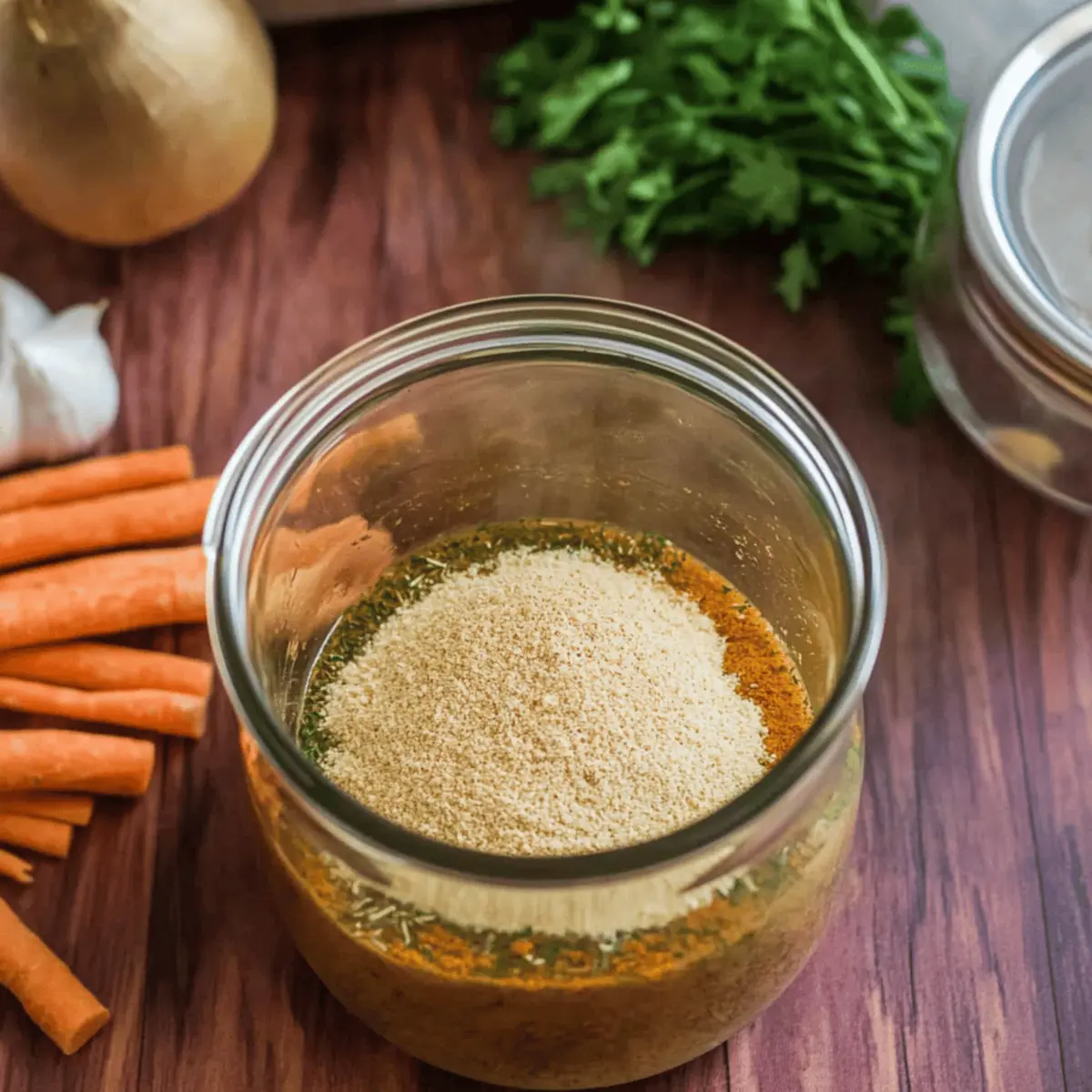 Jump to Recipe Print RecipeWhere do you turn when dinner seems flat, and your pantry stands half-empty? As I found myself staring at a shelf of neglected spices, the idea for a Homemade Veggie Broth Mix sparked joy and creativity. Not only is this recipe a fantastic shortcut for plant-based meals, but it’s also a budget-friendly alternative that elevates soups and sauces with a rich depth you’d swear comes from hours of simmering. Plus, by mixing your blend with just a few ingredients, you can say goodbye to the MSG found in store-bought options. Ready to discover how to transform your cooking with this simple yet versatile mix? Let’s dive into the flavorful world of homemade goodness! Why Choose Homemade Veggie Broth Mix? Convenience at Your Fingertips: With just a few quick steps, you can create a delicious veggie broth mix that’s ready to enhance any dish. Rich Flavor Boost: Packed with umami from nutritional yeast and aromatic herbs, your soups and sauces will sing with a depth of flavor that’s hard to beat. Versatile and Customizable: Tailor this mix to your taste! You can easily add your favorite dried veggies or spices for a personal touch. Budget-Friendly Solution: Save money while enjoying healthier meals by ditching expensive store-bought broths filled with undesirable additives. Perfect for Meal Prep: Make a big batch and store it in an airtight container for easy access when you need a flavor boost in your cooking! This simple homemade broth mix will quickly become your go-to secret ingredient. Veggie Broth Mix Ingredients • Create your own savory blend with these essential ingredients! For the Broth Mix Nutritional Yeast – Provides a cheesy, savory flavor, acting as the primary umami agent in the mix. Garlic Powder – Adds depth and warmth; opt for fresh minced garlic if you prefer a more intense flavor. Onion Powder – Enhances sweetness and savory notes; substitute with diced fresh onions for a different profile. Dried Herbs (Thyme, Oregano) – Adds aromatic flavors; feel free to use fresh herbs but adjust quantities accordingly. Sea Salt – Provides essential seasoning; you can omit this or use a low-sodium version to suit dietary needs. Turmeric – Gives color and a mild earthy taste; curry powder can be an exciting alternative for a unique twist. Black Pepper – Adds subtle heat; leave it out for a milder broth if desired. This veggie broth mix is your ticket to flavorful meals without the fuss of shopping for broth! Step‑by‑Step Instructions for Veggie Broth Mix Step 1: Combine Dry Ingredients In a large mixing bowl, combine 1 cup of nutritional yeast, 2 tablespoons of garlic powder, 2 tablespoons of onion powder, and 2 tablespoons each of dried thyme and oregano. Add 1 tablespoon of sea salt, 1 teaspoon of turmeric, and 1 teaspoon of black pepper. Stir the ingredients well with a whisk or spoon until they are evenly distributed, showcasing a vibrant blend of colors and fragrances. Step 2: Adjust Texture (Optional) If you prefer a smoother consistency for your veggie broth mix, transfer the dry ingredients into a food processor. Pulse the mixture for about 10-15 seconds until you reach your desired texture. Remember, if you choose to pulverize the mix, adjust the usage to 1 teaspoon per cup of water for optimal flavor balance. Step 3: Store Properly Now, it’s time to preserve your homemade veggie broth mix! Using a funnel, carefully transfer the dry mixture into a clean, dry glass jar with a tight-sealing lid. Label the jar clearly with the name “Veggie Broth Mix” and the date it was made, ensuring you can easily find it in your pantry when you’re ready to enhance your meals. Step 4: Usage To prepare a flavorful broth, simply add 1 tablespoon of your homemade veggie broth mix to each cup of piping hot water. Stir vigorously until well combined and the mix is fully dissolved, creating a delicious, savory liquid. This quick and convenient method is perfect for adding depth to soups, sauces, and other dishes that need a flavor boost. Make Ahead Options These Veggie Broth Mix preparations are ideal for busy home cooks looking to streamline their meal planning! You can mix the dry ingredients up to 3 days in advance, storing them in an airtight jar to preserve freshness and flavor. If you’re aiming for a finer texture, simply pulse the mixture in a food processor the day before use for easier blending with water. When you’re ready to use your Veggie Broth Mix, just add 1 tablespoon for each cup of hot water, stir well, and voilà—you’ll have a rich, vibrant broth that packs a flavorful punch, perfect for enhancing any dish in a matter of minutes! What to Serve With Veggie Broth Mix Building a satisfying meal is as easy as incorporating these delightful pairings that complement the rich flavors of your homemade veggie broth mix. Creamy Risotto: The silky texture and subtle taste of risotto absorb the broth mix beautifully, creating a luxurious dish. Hearty Vegetable Soup: Use your veggie broth mix as a flavorful base for a chunky vegetable soup, bursting with seasonal produce. Savory Quinoa Salad: Mix cooked quinoa with veggies and a splash of your broth for an elevated salad filled with nutrients and flavor. Lentil Stew: Your veggie broth adds depth to lentils, resulting in a comforting and protein-packed stew that warms the soul. Stuffed Peppers: Mix the broth with rice and spices, then stuff it into bell peppers for a colorful, satisfying main dish. Creamy Polenta: Stir the broth mix into creamy polenta for a rich, umami-flavored side dish that pairs perfectly with roasted vegetables. Roasted Veggies: Toss root vegetables with your broth mix before roasting for an extra layer of savory goodness that balances any meal. Fresh Herb Salad: A vibrant herb salad drizzled with a light dressing complements the savory flavor of your broth perfectly, providing a refreshing contrast. Herb-Infused Pasta: Cook pasta in broth for a flavor boost, 