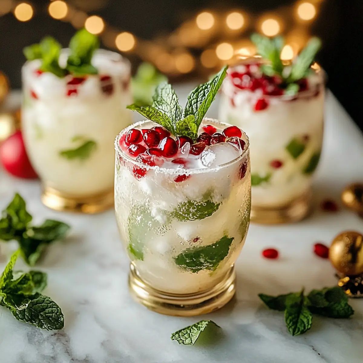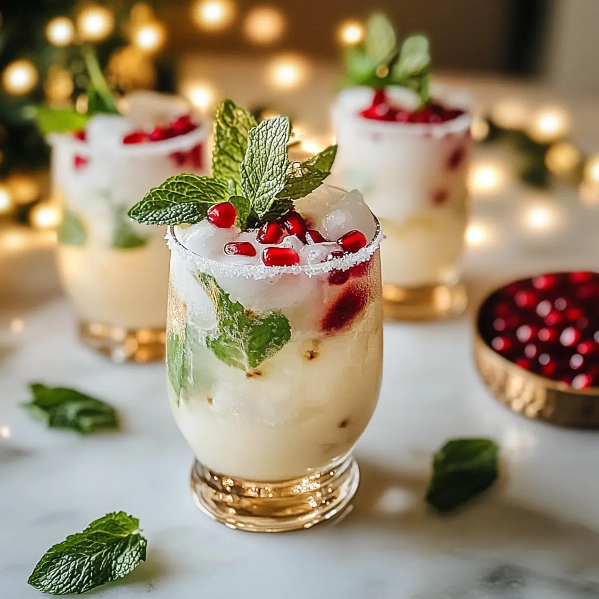 Jump to Recipe Print RecipeThere’s something undeniably enchanting about sipping a cocktail that marries warm, tropical breezes with cozy holiday cheer. My latest discovery? The delightful White Christmas Mojitos. This festive drink brings together smooth coconut rum, velvety coconut milk, and the bright zing of fresh mint and lime, making it a perfect addition to your holiday gatherings. Not only are these mojitos visually stunning, with their beautiful layers of mint and vibrant pomegranate arils, but they’re also a breeze to whip up in large batches. Whether you’re hosting a party or winding down after a long day, this refreshing holiday cocktail is here to elevate your spirit and bring a taste of the tropics to your winter celebrations. Ready to make a splash at your next get-together? Let’s dive in! Why are White Christmas Mojitos unforgettable? Sipping on a White Christmas Mojito is like capturing a tropical paradise in a glass! Effortless to prepare, this cocktail is a delightful way to impress your guests at holiday parties. Tropical flavors of coconut and lime create a unique twist on a classic drink. Visually stunning, the layers of mint and pomegranate arils add a festive pop. Easily batchable, you can prepare this drink ahead of time, making entertaining stress-free. Experience a taste of the tropics this holiday season with this refreshing cocktail that’s sure to become a favorite at any gathering! White Christmas Mojitos Ingredients For the Mojito Base • 3/4 cup lime juice – Freshly squeezed juice is recommended for optimal flavor. • 1/4 cup packed mint leaves – Extra mint can be used for garnish to enhance freshness. • 1/2 cup sugar – Adjust sugar according to preference; simple syrup may also be used for sweetness. • 1/2 cup white rum – Can substitute with additional coconut rum for a stronger coconut flavor. • 1/2 cup coconut rum – Delivers rich coconut flavor that takes the holiday spirit up a notch. • 1 cup canned coconut milk – Provides creaminess and richness; avoid coconut cream for a lighter drink. For the Fizz • Sparkling water – Add immediately before serving to maintain carbonation and lightness. For the Garnish • Pomegranate arils – Adds visual appeal and a hint of sweetness; can substitute with fresh berries for a twist. Step‑by‑Step Instructions for White Christmas Mojitos Step 1: Muddle the Base In a large pitcher, combine 3/4 cup of freshly squeezed lime juice, 1/4 cup of packed mint leaves, and 1/2 cup of sugar. Using a muddler, gently press the mint leaves for about 30 seconds, ensuring they release their aromatic oils and flavors without becoming bitter. The mixture should have a vibrant green hue and a delightful minty scent. Step 2: Add the Rums Pour in 1/2 cup of white rum and 1/2 cup of coconut rum into the muddled mixture. Stir gently for about 15 seconds until the sugar has fully dissolved. This creates a lovely blend that enhances the tropical vibes, with the coconut rum adding a festive flair that perfectly complements the classic mojito flavors. Step 3: Incorporate Coconut Milk Next, add 1 cup of canned coconut milk to the pitcher, stirring continuously for about 20 seconds until the mixture is uniform and creamy. The combination should take on a luscious, off-white tone, signaling that you’re well on your way to creating those delicious White Christmas Mojitos. Step 4: Prepare the Glasses Fill four glasses halfway with ice, ensuring they are chilled to maintain the refreshment of the drink. This allows for the perfect cooling sensation when pouring in the mojito mixture, giving a delightful frosty visual that’s ideal for festive celebrations. Step 5: Pour the Mojito Slowly pour the coconut rum mixture into each glass, filling them about 3/4 full. Take care to allow the vibrant layers to form, giving your White Christmas Mojitos an eye-catching presentation. The creamy blend should sit beautifully atop the ice, ready for a fizzy finish. Step 6: Add Sparkling Water Top each glass with sparkling water, adding just enough to create a bubbly finish without overflowing. This final touch adds lightness and effervescence, making your White Christmas Mojitos irresistibly refreshing. Aim for about 1/4 cup per glass, ensuring the fizz remains bubbly and delightful. Step 7: Garnish and Serve Finish off your festive drinks by garnishing each glass with extra mint leaves and a sprinkle of pomegranate arils for a pop of color. Take a moment to admire the vibrant layers before serving. This final touch not only enhances the visual appeal but also enriches the flavor, making your White Christmas Mojitos truly unforgettable. Make Ahead Options These White Christmas Mojitos are perfect for busy home cooks looking to save time during the holiday rush! You can prepare the mojito mixture (lime juice, mint, sugar, and rums) up to 24 hours in advance. Simply muddle the ingredients as instructed and store the mixture in the refrigerator in an airtight container. This will keep the flavors vibrant while preventing the mint from getting too bitter. When you’re ready to serve, just fill your glasses with ice, pour in the prepared mixture, add the coconut milk, top it off with sparkling water for fizz, and garnish with mint leaves and pomegranate arils. Your guests will enjoy these refreshing cocktails just as much as if you made them fresh! Expert Tips for White Christmas Mojitos Muddle Carefully: Gently muddle the mint leaves to release flavor without bitterness. Over-muddling can lead to a harsh taste. Chill Your Glasses: Pre-chill your glasses to keep your mojitos cold longer. This prevents the ice from melting too quickly. Adjust Sweetness: Taste before serving to adjust sugar levels. Coconut milk adds natural sweetness, so add sugar in small increments. Add Fizz Last: Always pour sparkling water just before serving to maintain its delightful carbonation. Timing is key to keep it bubbly! Garnish Creatively: Enhance v