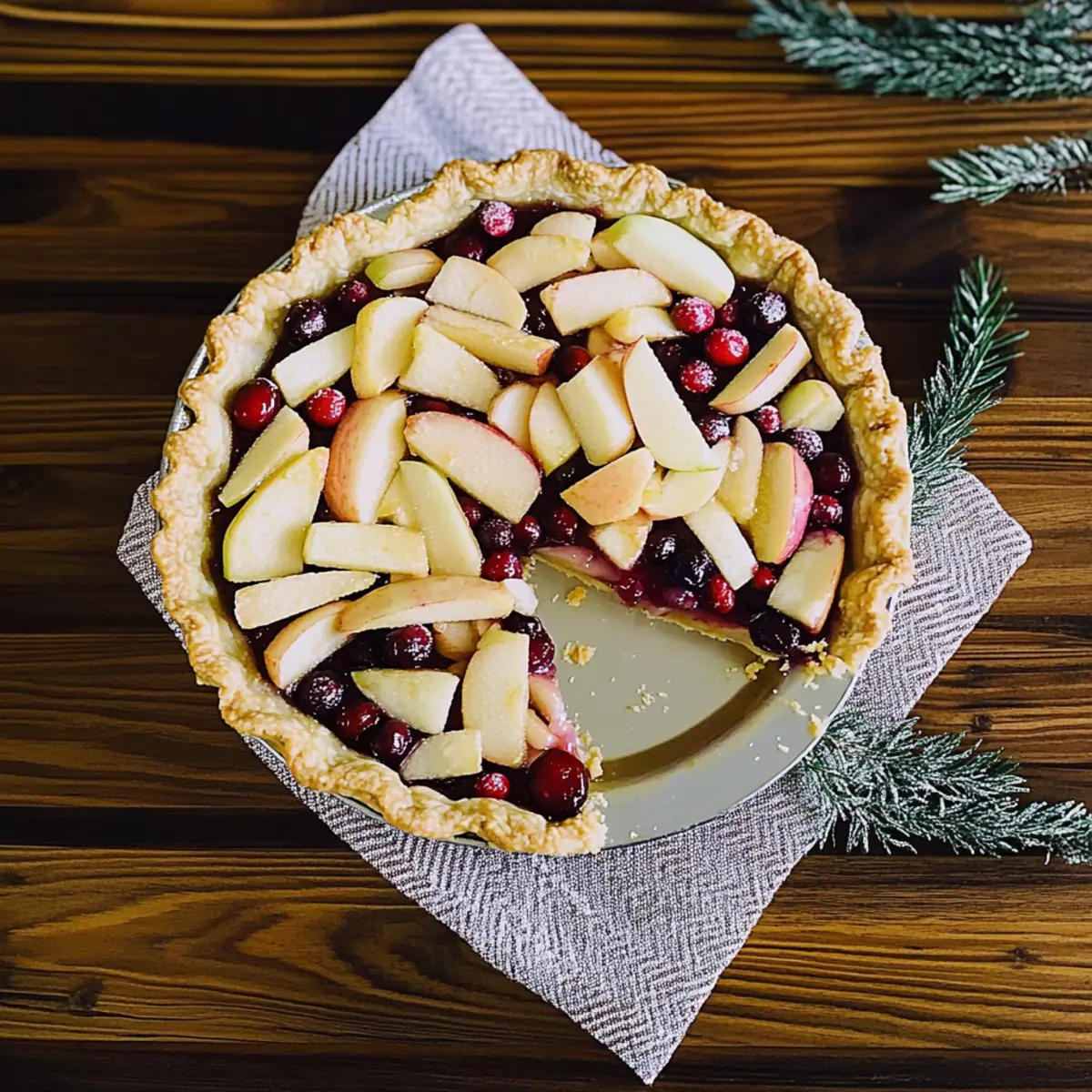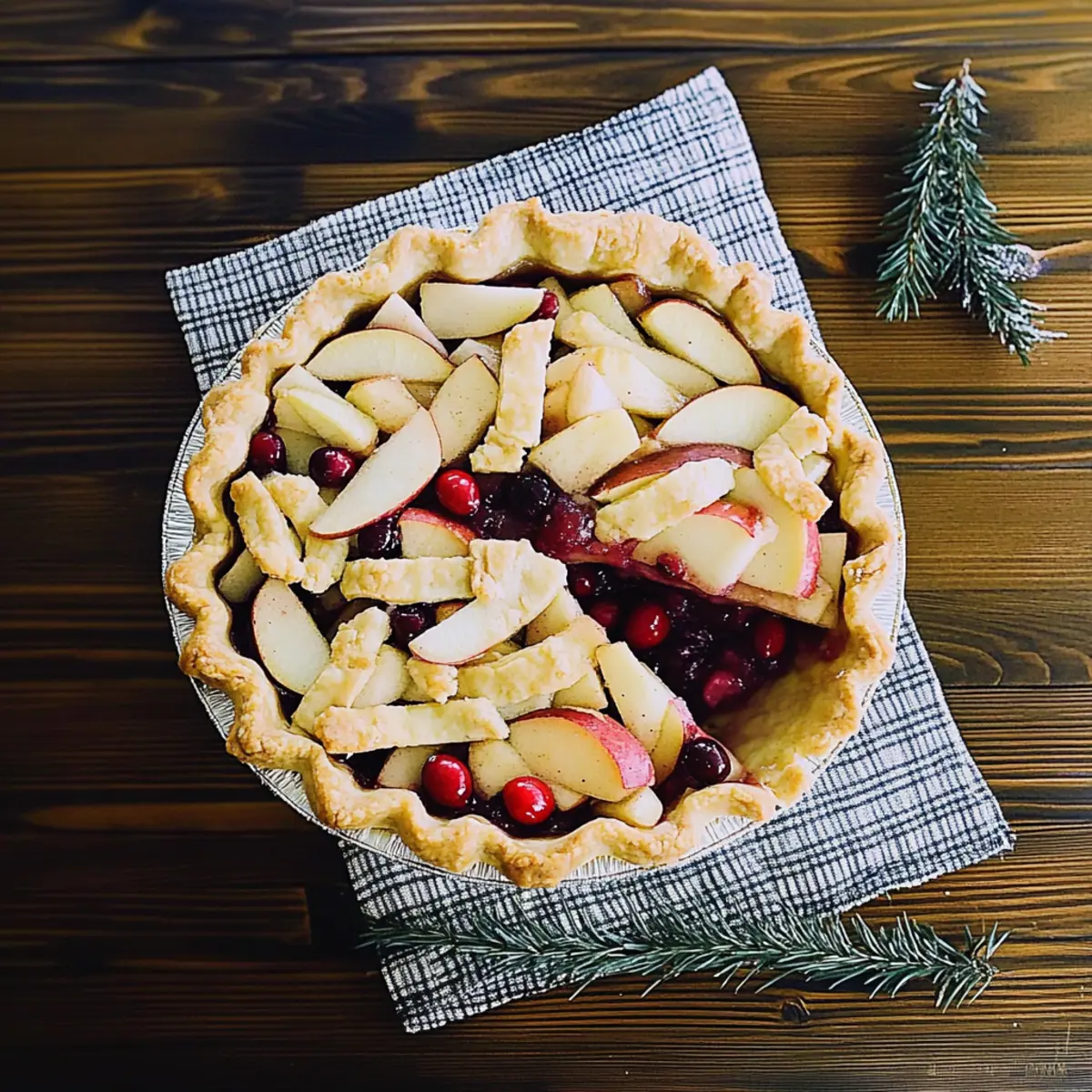Jump to Recipe Print RecipeAs the first chill of winter settles in, the allure of cozy baking calls me to the kitchen. One bite of this inviting Winter Berry Pie, filled with sweet apples and tart cranberries, transports me to a warm, nostalgic place. The flaky crust not only supports the vibrant filling but also melts in your mouth with each slice. Not only is this homemade pie a delightful treat that brings the family together, but it’s also a quick and easy way to impress at holiday gatherings. Whether served warm with a scoop of vanilla ice cream or enjoyed with a cup of coffee, this dessert wraps around you like a soft blanket on a chilly evening. Ready to fill your home with warmth and delicious aromas? Let’s dive into this heartwarming recipe! Why is this Winter Berry Pie irresistible? Comforting Warmth: This Winter Berry Pie wraps you in a cozy embrace, perfect for chilly days. Flavor Balance: The sweet apples and tangy cranberries create a delightful fusion that dances on your taste buds. Simple to Make: With a straightforward recipe and common ingredients, you can whip up this pie with ease. Versatile Options: Feel free to swap cranberries for blueberries or add some nuts for extra crunch. Crowd-Pleasing Treat: It’s a showstopper dessert for holiday gatherings, guaranteed to impress family and friends! Serve it warm with a scoop of vanilla ice cream, and you won’t want to miss out on this classic comfort—just like our delicious Blueberry Muffins Bursting with flavors that inspire joy. Winter Berry Pie Ingredients For the Pie Crust • Pie Crust – Essential for structure; you can use a store-bought option if you’re short on time. For the Filling • Apples – Provide natural sweetness and a sturdy texture; Granny Smith or Honeycrisp work best for balance. • Cranberries – Add a tart burst of flavor that contrasts beautifully with the sweet apples; fresh or frozen both do the trick. • Sugar – Sweetens the filling; try brown sugar for a deeper, caramel-like taste. • Cinnamon – Enhances warmth and flavor; a sprinkle of nutmeg adds even more complexity. • Lemon Juice – Brightens the filling; consider omitting if you opt for very tart apples. Now that you have the ingredients ready, you’re just a step away from creating this delightful Winter Berry Pie that will be the highlight of your holiday gatherings! Step‑by‑Step Instructions for Winter Berry Pie Step 1: Preheat the Oven Begin by preheating your oven to 425°F (220°C) to set the stage for baking your delicious Winter Berry Pie. This temperature helps to achieve a perfectly golden and flaky crust. While the oven heats up, you can gather all your ingredients and prepare your workspace for the fun ahead. Step 2: Prepare the Pie Crust Roll out your pie crust on a lightly floured surface until it’s about 1/8 inch thick. Carefully transfer the crust to a 9-inch pie dish, gently pressing it into the bottom and up the sides. Trim any excess dough, allowing about an inch to fold over the edges later, and refrigerate the crust while you prepare the filling. Step 3: Mix the Filling In a large mixing bowl, combine your sliced apples and cranberries. Sprinkle in the sugar, cinnamon, and lemon juice, stirring well to ensure every piece is coated. Allow the mixture to sit for about 10 minutes; this will help the flavors meld and create a deliciously aromatic filling for your Winter Berry Pie. Step 4: Fill the Pie Crust Take the fruit mixture and pour it into the chilled pie crust, spreading it out evenly. If you’re using a top crust or lattice, roll out another portion of dough and either cover the filling entirely or create a lattice design. Ensure the edges of the crust are crimped together to seal in the delicious juices as it bakes. Step 5: Bake the Pie Carefully place your pie in the preheated oven and bake for 35-45 minutes. The filling should be bubbling, and the crust should turn a beautiful golden brown. Keep an eye on the edges; if they brown too quickly, cover them with foil to prevent burning while the rest of the pie bakes. Step 6: Cool Before Serving Once baked to perfection, remove the Winter Berry Pie from the oven and allow it to cool for at least 30 minutes. This cooling period helps set the juices, making slicing easier and less messy. The crust will firm up slightly as it cools, enhancing the overall texture of your delightful pie. Winter Berry Pie Variations & Substitutions Feel free to make this delightful Winter Berry Pie your own with these tasty twists and alternatives! Gluten-Free Crust: Swap regular pie crust for a gluten-free version to accommodate dietary needs without sacrificing flavor. Berry Medley: Combine cranberries with blueberries or raspberries to create a vibrant filling that’s bursting with flavor and color. Nutty Crunch: Toss in some chopped walnuts or pecans to add texture and a rich, earthy flavor that enhances the berry filling. Dairy-Free Delight: Use a dairy-free butter substitute in the crust for a lactose-free option that still achieves that flaky, buttery goodness. Spiced Up: Introduce cardamom or ginger to the filling for an aromatic twist that warms the heart and excites the taste buds. Less Sugar: Reduce the sugar content by using a natural sweetener, such as maple syrup or honey, for a healthier option. Apple Variations: Experiment with other apple varieties like Fuji or Braeburn for different levels of sweetness and tartness—each offers a unique profile. Lattice Love: Try a full lattice crust on top for a beautiful presentation; the woven design not only looks stunning but also allows steam to escape, keeping the pie from getting soggy. These delightful variations not only personalize your pie but also keep things exciting in the kitchen. And if you’re in the mood for more berry goodness, don’t forget to check out our Blueberry Muffins Bursting for another sweet treat experience! Storage Tips for Winter Berry Pie Room Temperature: Keep your 