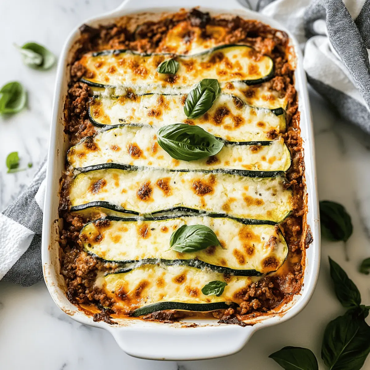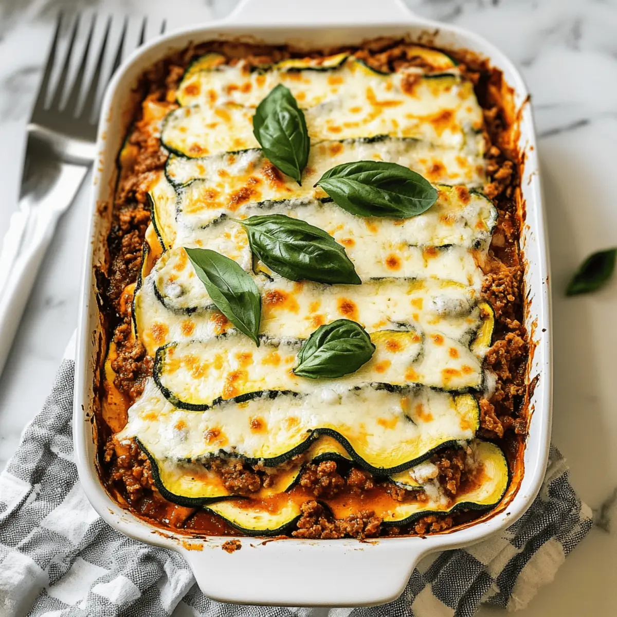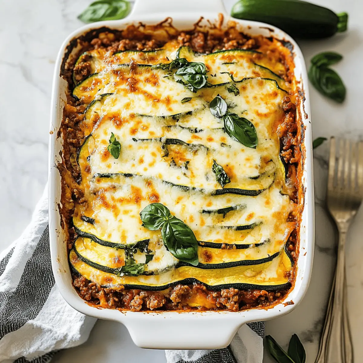 Jump to Recipe Print RecipeAs I stood in my kitchen, savoring the aroma of marinara simmering on the stove, I couldn’t shake the anticipation of a delicious twist on a classic favorite: Zucchini Lasagna. This dish offers a low-carb alternative to traditional lasagna, where satisfying layers of zucchini replace those heavy pasta noodles. It’s a family-friendly meal that’s not only easy to whip up but also a wonderful way to sneak in some veggies without anyone noticing. Rich ground beef, a trio of cheeses, and a hearty tomato sauce all come together to create layers of flavor and texture that everyone will love. Curious how to make this delightful comfort food while keeping it gluten-free? Let’s dive into the details and find out how easy it is to elevate your dinner table with this Perfectly Layered Low-Carb Zucchini Lasagna! Why is Zucchini Lasagna a Must-Try? Healthy Twist: This zucchini lasagna is a fantastic low-carb alternative to traditional recipes, allowing you to indulge without the guilt. Family-Friendly: It’s simple to prepare, making it a go-to dish that even picky eaters will love. Flavorful Layers: Rich flavors from ground beef and a trio of cheeses combine to create a satisfying taste that rivals any classic lasagna. Versatile: Experiment with different ingredients—try swapping in eggplant or adding spinach for extra nutrients! Make-Ahead Friendly: You can assemble this dish a day in advance, making dinner planning effortless and stress-free. With all these benefits, you’re sure to fall in love with this delightful and hearty meal! Zucchini Lasagna Ingredients For the Lasagna Layers • Zucchini – A perfect replacement for pasta noodles, choose firm zucchinis for the best structure. • Ground Beef – Offers hearty flavor; swap with ground turkey for a lighter protein option. • Marinara Sauce – Adds rich moisture; opt for a low-sugar variety for a healthier twist. For the Cheese Mixture • Ricotta Cheese – Provides creaminess between layers; mix with an egg for better spreading. • Parmesan Cheese – Brings a salty, nutty flavor; nutritional yeast serves as a dairy-free alternative. • Mozzarella Cheese – Melts beautifully for a gooey topping; use light mozzarella to reduce calories. For Seasoning • Egg – Binds the ricotta; can be omitted for a dairy-free version. • Salt & Pepper – Essential for flavor enhancement; season according to taste. This Zucchini Lasagna recipe is not only packed with flavor but also offers a gluten-free and low-carb approach to your favorite comfort food! Step‑by‑Step Instructions for Zucchini Lasagna Step 1: Preheat the Oven Preheat your oven to 400°F (200°C) to ensure it’s hot and ready for your delicious Zucchini Lasagna. This temperature will help create a perfectly baked dish with golden, bubbly cheese on top. Set your timer for later, as you’ll be baking for 40-45 minutes, giving you time to prepare the layers while the oven heats. Step 2: Slice the Zucchini Using a sharp knife, slice the zucchini lengthwise into thin, even pieces about 1/4 inch thick. Aim for uniformity to ensure consistent cooking and layers. Lay them on a clean kitchen towel, and sprinkle with salt to draw out excess moisture. Allow the zucchini slices to sit for about 15-20 minutes before patting them dry with another towel. Step 3: Cook the Ground Beef In a large skillet over medium-high heat, add the ground beef and cook until browned, stirring occasionally for around 7-10 minutes. Ensure there are no pink spots remaining—this indicates it is fully cooked. Once browned, stir in your marinara sauce and mix well; let it simmer for a few minutes while you prepare the cheese mixture. Step 4: Prepare the Cheese Mixture In a mixing bowl, blend your ricotta cheese with an egg, salt, and pepper until smooth and creamy. This will be the luxurious layer in your Zucchini Lasagna. Make sure the ricotta is at room temperature for easy mixing, which allows for better spreading between layers later. Set this mixture aside as you assemble the lasagna. Step 5: Assemble the Layers In a 9×13-inch casserole dish, start layering your Zucchini Lasagna. Begin with about ½ cup of marinara sauce at the bottom to prevent sticking. Place a layer of zucchini slices, followed by half of the bolognese sauce, half of the ricotta mixture, and ½ cup of mozzarella cheese. Repeat this process to create a second layer, building rich flavors with each component. Step 6: Add the Final Layer For the final layer, place one last covering of zucchini slices over the top, then sprinkle with the remaining parsley and generously top with the rest of your mozzarella cheese. This final touch will ensure a deliciously gooey and tempting crust when baked. Step 7: Bake the Zucchini Lasagna Cover the casserole dish with foil and bake in your preheated oven for 40-45 minutes. Afterwards, remove the foil and broil for an additional 3-5 minutes, watching closely until the cheese is golden and bubbly. This adds a delightful crust to your Zucchini Lasagna, enhancing both flavor and texture. Step 8: Garnish and Serve Once baked, remove the Zucchini Lasagna from the oven and let it rest for about 10 minutes before slicing. This resting time allows the layers to set, making it easier to serve. Garnish with fresh basil for an aromatic finish, and enjoy this delightful, low-carb, gluten-free comfort food with your family! Zucchini Lasagna Variations & Substitutions Feel free to get creative with this delightful zucchini lasagna, transforming it into a dish that suits your family’s tastes and dietary needs! Eggplant Swap: Replace zucchini with thinly sliced eggplant for a unique flavor and texture. Enjoy the slight earthiness eggplant adds—you may find it hard to go back! Add Spinach: Fold in fresh spinach leaves for added nutrients and a pop of color. Spinach provides a subtle earthiness blending beautifully with the other flavors. Sautéed Mushrooms: Introduce sautéed mu
