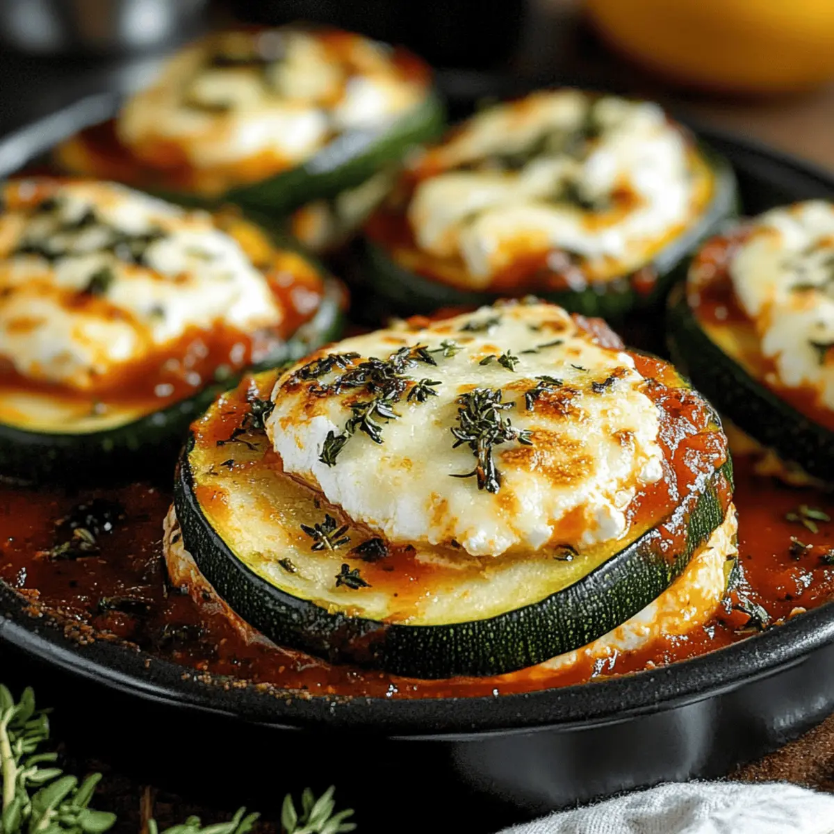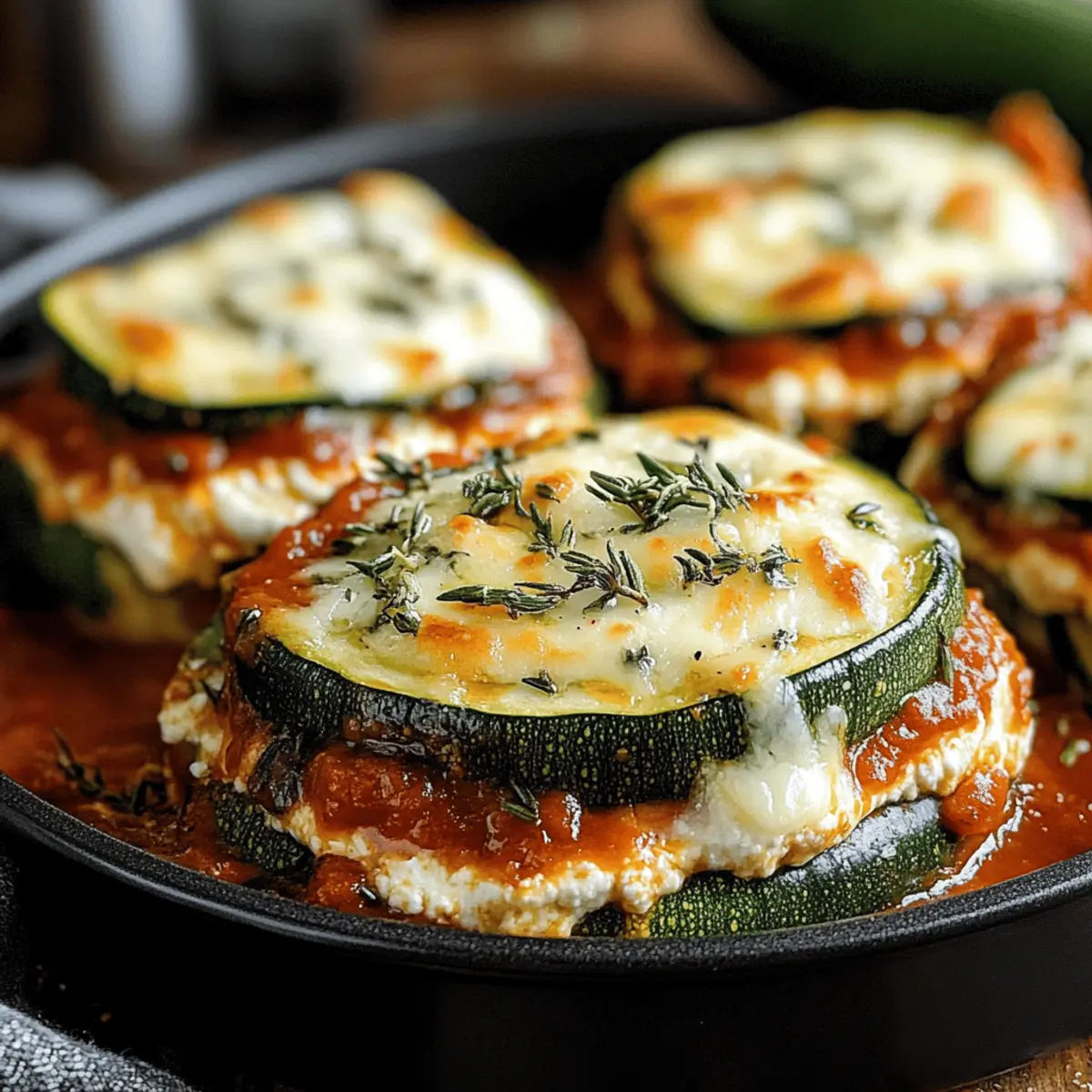 Jump to Recipe Print RecipeAs I pulled the steaming dish from the oven, the enticing aroma of marinara and melted cheese filled the kitchen, transporting me to an Italian trattoria. These Layered Zucchini Ricotta Melts with Marinara are my not-so-secret weapon for an effortless yet impressive meal. Not only does this low-carb delight come together in under an hour, but it also proves that wholesome eating doesn’t have to sacrifice taste. With tender layers of zucchini, creamy ricotta, and gooey mozzarella, this vegetarian dish is perfect for both a quick weeknight supper and a leisurely weekend lunch. Who could resist a comforting plate that feels indulgent while being light and fresh? Curious about how a few simple ingredients can create such magic? Let’s dive into this delightful recipe! Why are Zucchini Ricotta Melts a must-try? Irresistible flavor: The magic of tender zucchini layered with creamy ricotta and rich marinara creates a taste sensation that feels indulgent yet wholesome. Quick to prepare: Ready in under an hour, this dish is perfect for busy weeknights or casual weekend gatherings. Healthy comfort food: With low-carb and vegetarian profiles, it’s a guilt-free option that everyone can enjoy. Versatile base: Feel free to personalize with your favorite ingredients, like adding sautéed mushrooms or swapping marinara for pesto to satisfy your cravings. Once you try these Layered Zucchini Ricotta Melts with Marinara, you’ll never look at zucchini the same way again! Zucchini Ricotta Melts Ingredients For the Zucchini Layer • Zucchini – A versatile vegetable that forms the base, providing moisture and a nourishing layer. For the Cheese Layer • Ricotta Cheese – This creamy layer adds richness; substitute with cottage cheese for a lighter option. • Shredded Mozzarella Cheese – Adds a gooey, melty topping; feel free to swap for provolone for a unique twist. For the Marinara Layer • Marinara Sauce – Essential for flavor and moisture; choose low-sugar options to keep it healthy. For Seasoning and Garnishing • Dried Oregano – A fragrant herb that enhances flavor; fresh oregano can substitute for a fresh hit. • Fresh Basil – Perfect for garnish, lending a burst of color and fresh aroma. • Salt and Pepper – Key for taste; adjust based on your preferences. • Red Pepper Flakes (Optional) – Use for added heat to complement the creamy texture beautifully. For Cooking • Olive Oil – Used for brushing the zucchini slices to enhance flavor and prevent sticking. Step‑by‑Step Instructions for Zucchini Ricotta Melts with Marinara Step 1: Preheat the Oven Begin by preheating your oven to 375°F (190°C), ensuring a well-regulated temperature for baking. This step is crucial as it will provide an evenly cooked dish. While the oven is heating up, gather your ingredients and equipment to make the preparation process more efficient and enjoyable. Step 2: Prepare the Zucchini Slice the medium zucchinis lengthwise into 1/4-inch thick slices, creating a foundation for your Zucchini Ricotta Melts. Brush both sides of the zucchini slices with olive oil and season them generously with salt and pepper. This will enhance their flavor and prevent sticking during baking, making them tender and delicious. Step 3: Layer the First Zucchini Slices In a lightly greased 8×8 inch baking dish, gently arrange half of the prepared zucchini slices in a single layer. Ensure they are evenly spaced to create a solid base for the layers to come. This layering technique is essential for the integrity of the dish, allowing the flavors to meld beautifully. Step 4: Add the Ricotta Cheese Spread half of the creamy ricotta cheese evenly over the first layer of zucchini slices. Use a spatula to ensure it covers the zucchini thoroughly, providing a rich and luscious layer that binds the dish together. This step prepares your Zucchini Ricotta Melts to be flavorful and satisfying. Step 5: Incorporate the Marinara Sauce Next, pour half of the marinara sauce over the ricotta layer, making sure to distribute it evenly across the surface. The marinara will infuse the dish with a tangy flavor while keeping the layers moist. This step is what truly elevates your Zucchini Ricotta Melts with Marinara into a comforting, hearty dish. Step 6: Add the Mozzarella Cheese Sprinkle half of the shredded mozzarella cheese on top of the marinara sauce, creating a gooey, melty layer that will become a delicious topping. Be generous with your cheese to achieve that satisfying melt. This step adds both texture and a wonderful flavor to the overall dish. Step 7: Repeat the Layering Process Now it’s time to repeat the layering process with the remaining zucchini slices, ricotta cheese, marinara, and mozzarella. Start by adding the rest of the zucchini, then ricotta, followed by marinara, and finally finish with the remaining mozzarella cheese. This second layer enhances the depth of flavor in your Zucchini Ricotta Melts. Step 8: Season and Bake Sprinkle dried oregano over the top layer for an aromatic touch. Place the baking dish in the preheated oven and bake for 20-25 minutes. Keep an eye on the dish, watching for the cheese to become bubbly and golden. The zucchini should be tender and ready to enjoy when it comes out of the oven. Step 9: Garnish and Serve Once baked to perfection, remove the dish from the oven and let it cool for a few minutes. Garnish with freshly chopped basil to add a bright, aromatic flair. Your Zucchini Ricotta Melts with Marinara are now ready to be served hot, allowing everyone to indulge in this comforting and wholesome meal. Make Ahead Options These Layered Zucchini Ricotta Melts with Marinara are fantastic for meal prep, saving you valuable time on busy weeknights! You can slice and season the zucchini, layer with ricotta, marinara, and mozzarella, and then refrigerate the assembled dish for up to 24 hours before baking. This not only allows the flavors to meld beautifully, but 